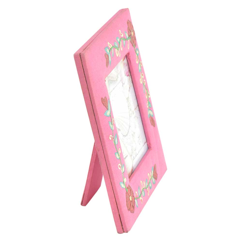 Hand Painted Photo Frame Pink with Floral Design comes with a glass front ,back board and stand .These photo frames are ideally suited for table decoration, bedside or hanging on the wall either vertical or in horizontal manner. The frame has a very rustic look to it Crafted with style and durability it suits any kind of interiors home or office. Ideal gift for any occasion whether anniversary, birthday or valentine's day.