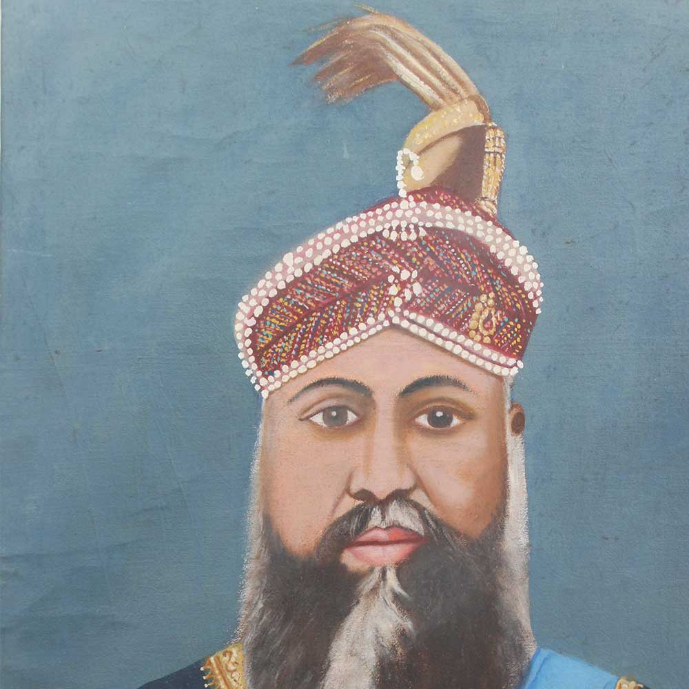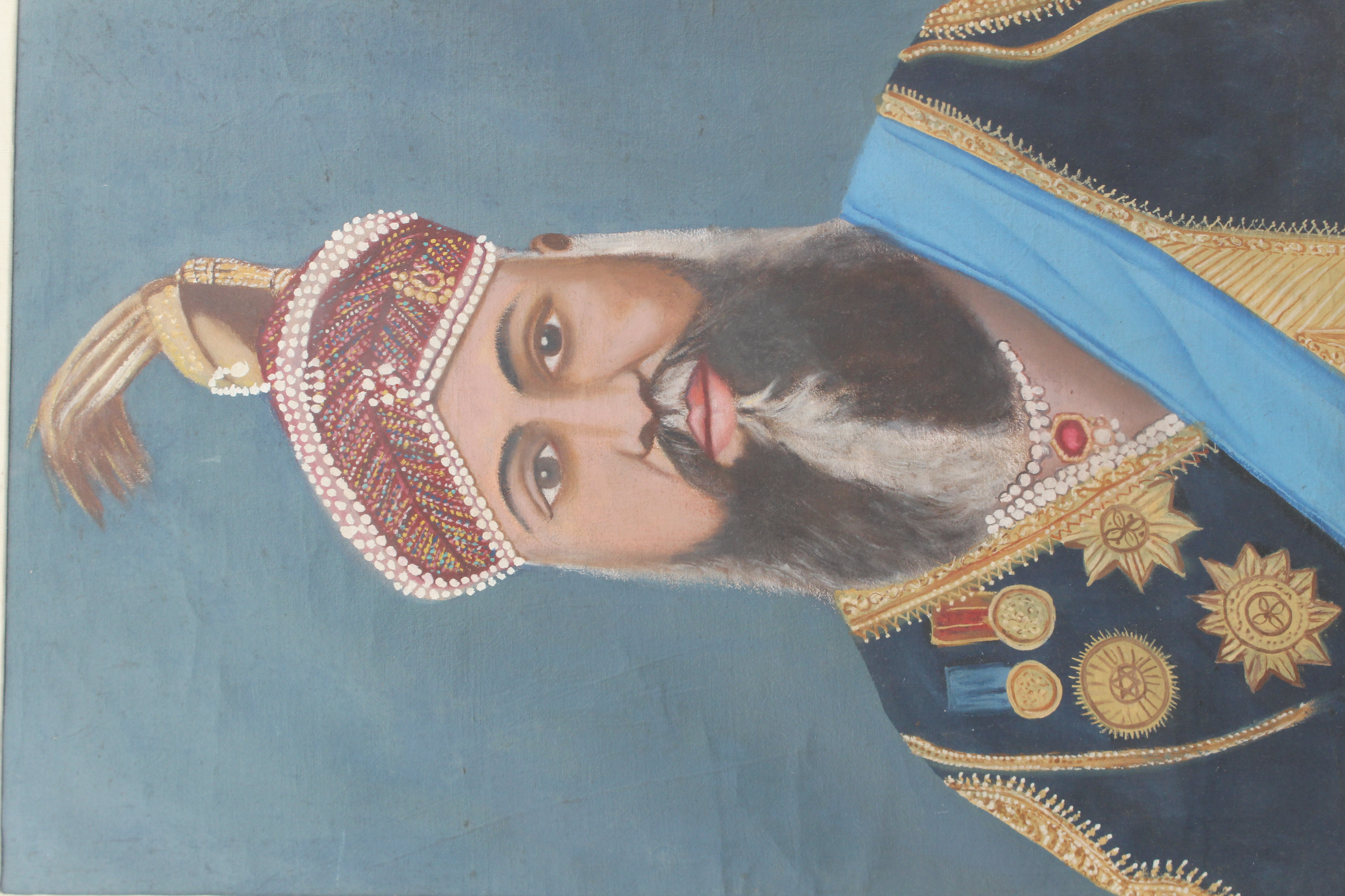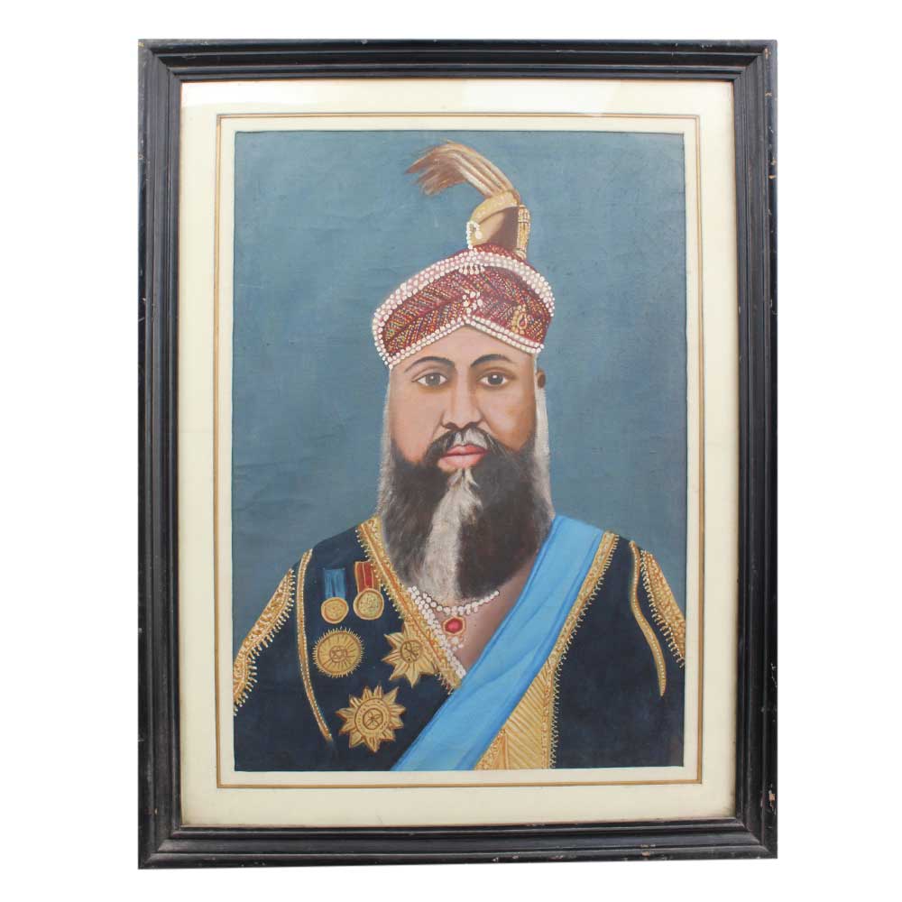 Hand painted portrait of a major-general where he is seen wearing the star of India badge, the Jubilee medal, and a star integrating his own arms on his uniform, which is adorned with gold lace.