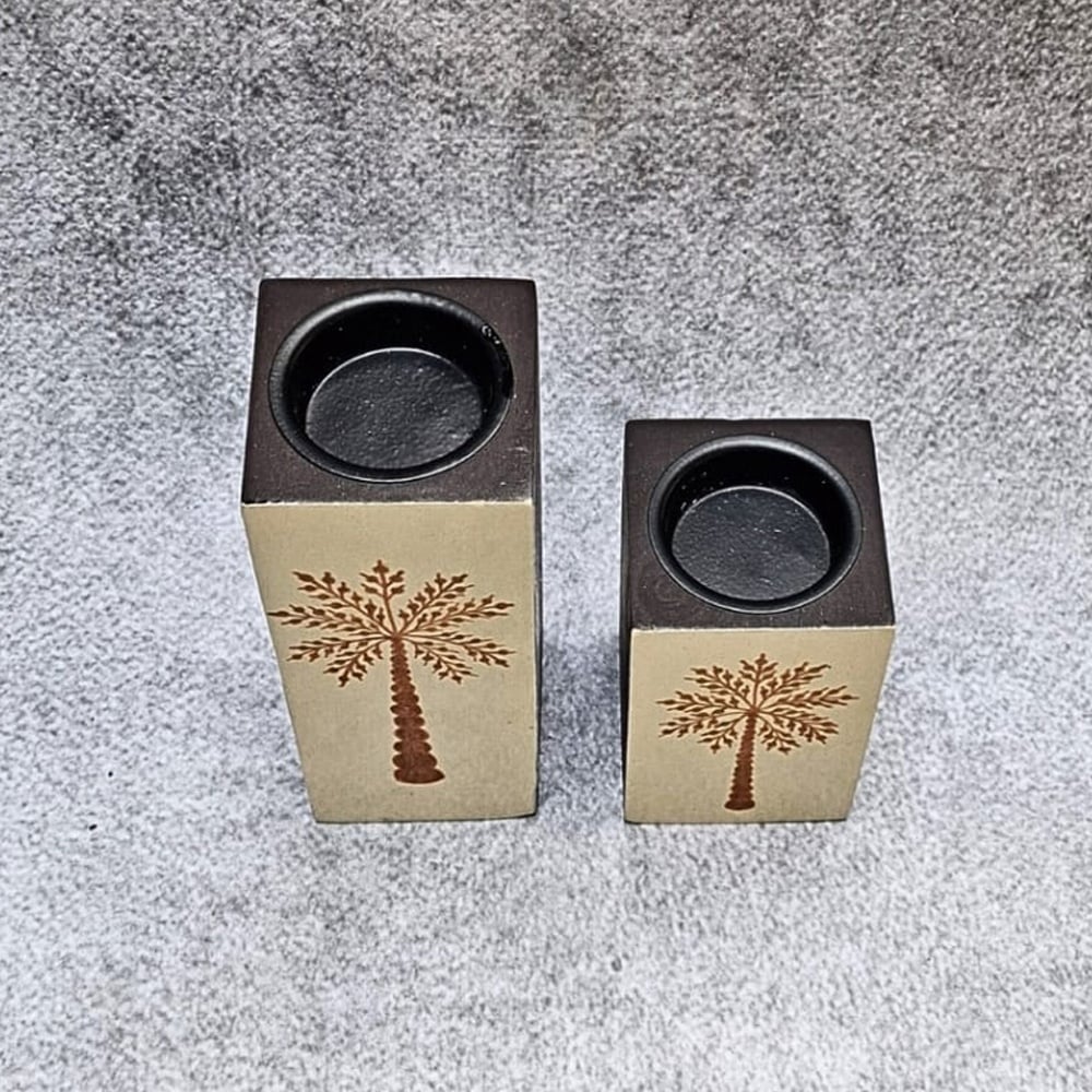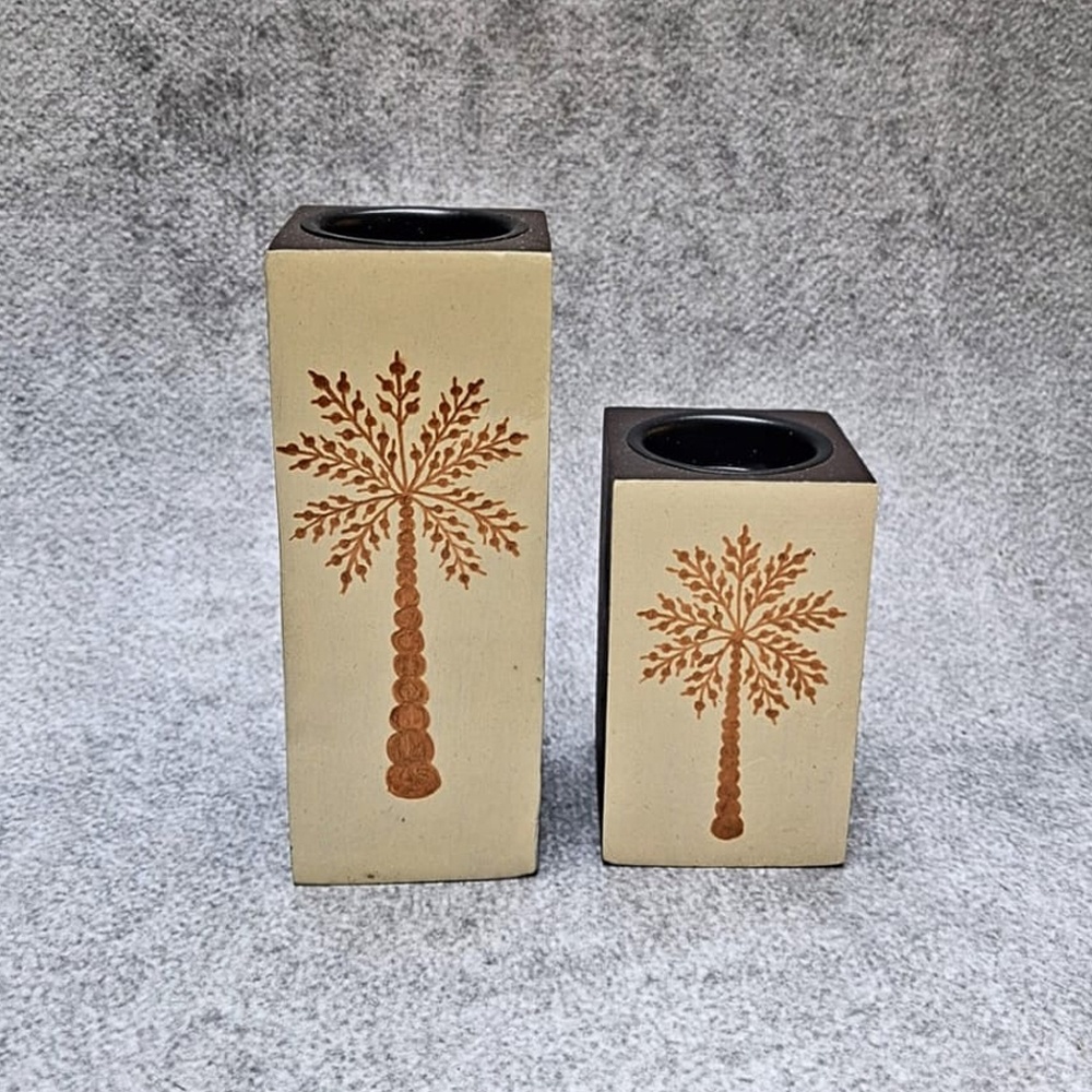 This hand painted wooden candle holder pair features a minimalist yet artistic design, highlighted by intricate tree motifs that symbolize growth and harmony. Crafted with precision and finished with subtle earthy tones, this elegant duo enhances your home decor with a warm, refined aesthetic.