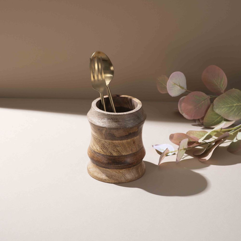 The Hand-Turned Wooden Utensil Stand by Sirevest is a beautifully crafted, functional piece for your kitchen. Expertly turned by hand from high-quality wood, it offers a stylish and practical solution for organizing your cooking utensils. The natural wood finish showcases unique grain patterns, making each stand one-of-a-kind. Perfect for holding spoons, spatulas, whisks, and other kitchen essentials, this stand keeps your workspace neat and your tools easily accessible. Whether displayed on your countertop or kitchen island, the Hand-Turned Wooden Utensil Stand adds a touch of rustic elegance and timeless charm to your home.