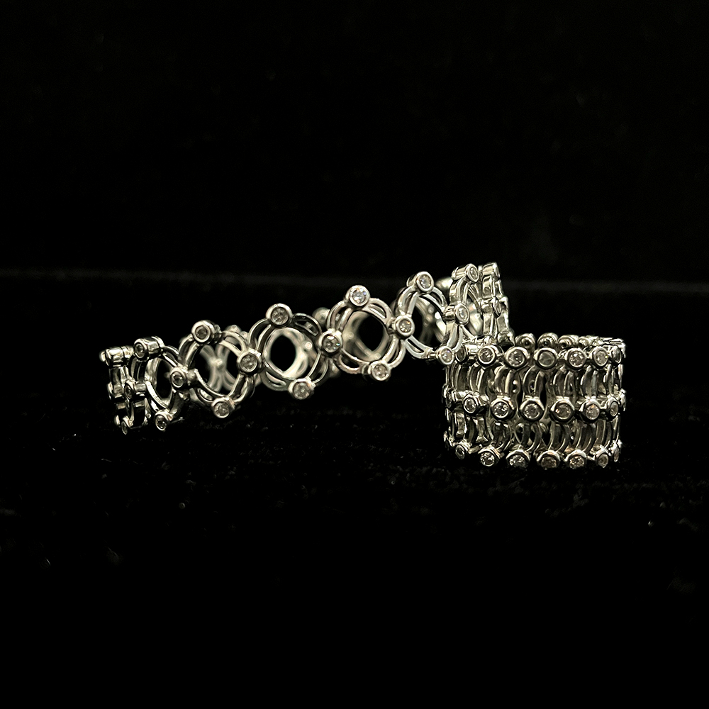 The design allows a seamless transition from bracelet to ring offering flexibility for changing looks without adding multiple accessories.