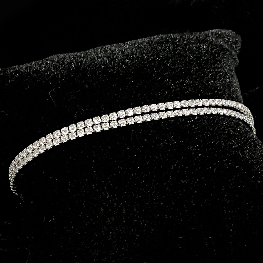 The bracelet features two aligned rows of precision set CZ stones that create a smooth and consistent visual flow. The layered structure enhances brilliance while keeping the profile slim and wearable.