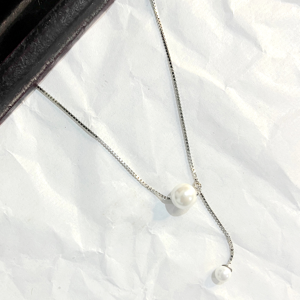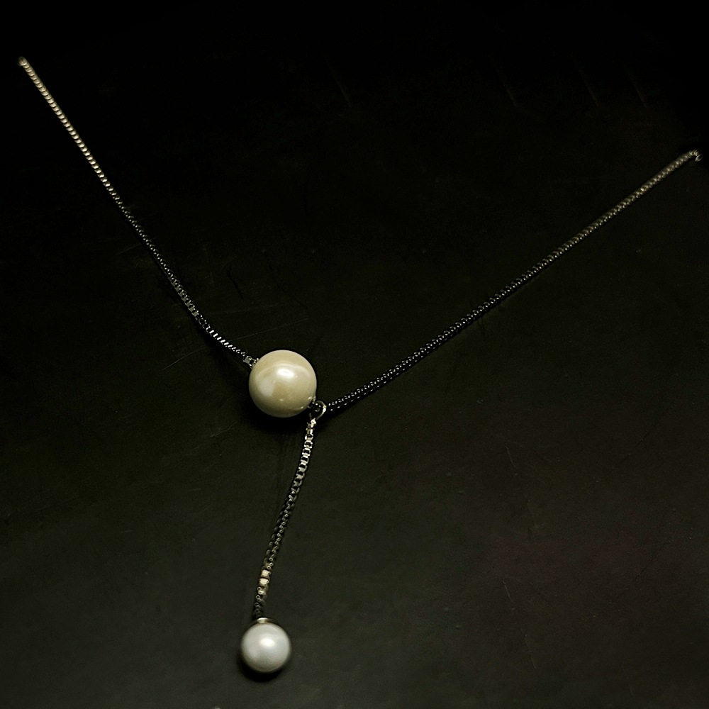 This handcrafted pearl drop necklace features a refined Y-style silhouette designed to highlight graceful movement and minimal elegance. A smooth pearl rests delicately at the neckline, while a slender sterling silver drop chain finishes with a second pearl, creating a balanced and modern composition. Carefully handcrafted by skilled artisans, this necklace brings together simplicity, sophistication, and timeless charm. Packed and quality checked by Indianshelf. Elegant Y Style Pearl Necklace Design The dual pearl arrangement adds visual flow and subtle statement appeal while maintaining a clean and lightweight aesthetic. Minimal Y-style chain with two pearl accents Graceful drop design ideal for contemporary styling Entirely handmade no machines used Material And Craftsmanship Details Material 925 sterling silver Smooth finished pearls used as focal elements Handcrafted using traditional jewellery techniques Packed and quality checked by Indianshelf Styling And Gifting Versatility Perfect for evening wear minimal outfits and layered looks Pairs beautifully with western and fusion ensembles Thoughtful gifting option for birthdays anniversaries and celebrations Suitable for boutique and premium jewellery collections Care Instructions For Long Lasting Shine Store the necklace in an airtight pouch when not in use. Avoid contact with water perfumes and harsh chemicals. Clean gently with a soft microfiber cloth to preserve the pearl surface and silver finish. Product Assurance Each necklace is individually handcrafted, ensuring slight natural variations that reflect authentic artisan workmanship and premium quality.