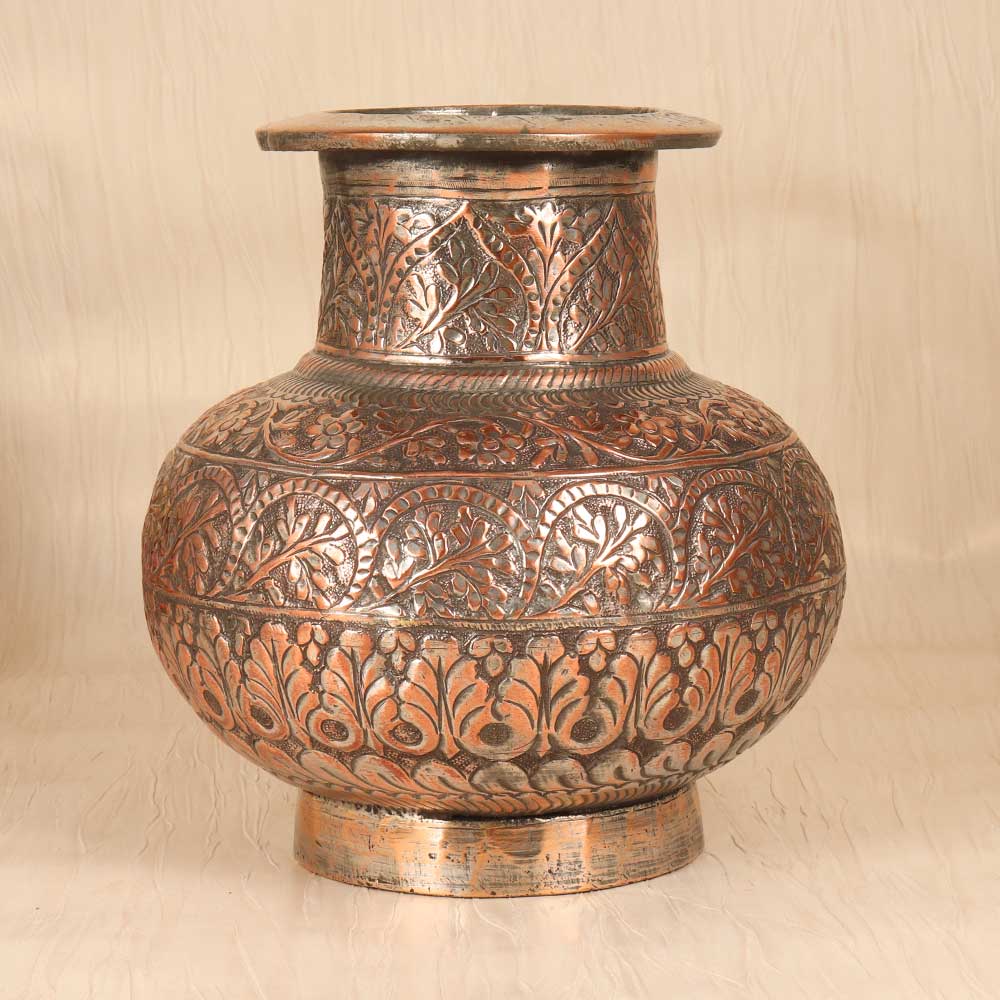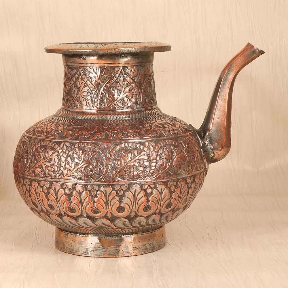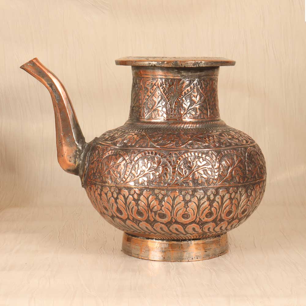 Make a stylish statement with this engraved copper water pot inspired by Islamic art. Meticulously hand-engraved by skilled artisans, this stunning pot features artistic motifs and patterns that will stand out in any home. The pure copper construction evenly distributes heat, quickly boiling water for coffee, tea, instant meals and more. The convenient spout allows for drip-free pouring. With its blend of form and function, this decorative water pot will become your new favorite kitchen accessory. Bring an artistic touch to your home with this vintage-style copper water pot engraved with Islamic motifs. Each piece is lovingly hand-etched by artisans, making every pot a unique work of art. The lightweight copper construction heats evenly for quickly boiling water while the spout allows for controlled pouring. For those who appreciate decorative home accents, this hand-engraved copper pot makes an elegant and meaningful addition to any space. Let its timeless beauty elevate your kitchen to a work of art.