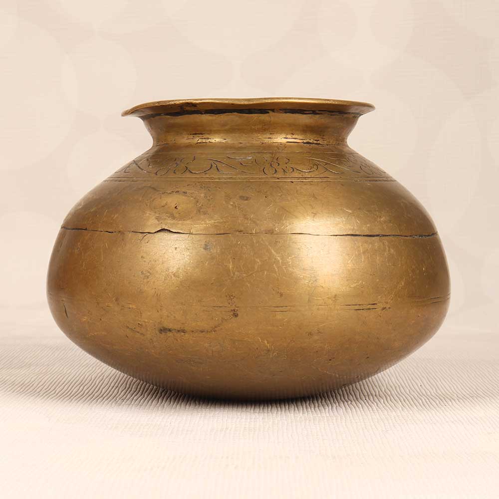 - Ornate antique brass finish with engraved motif