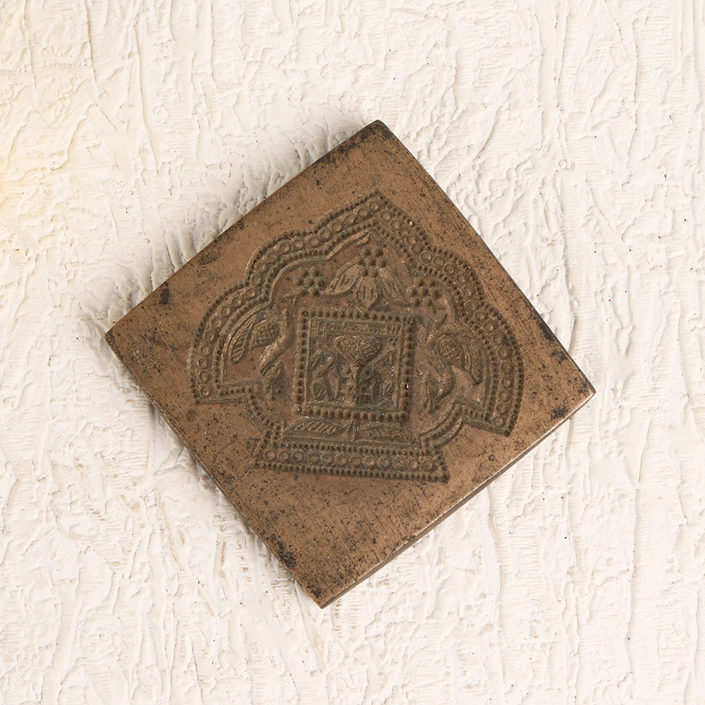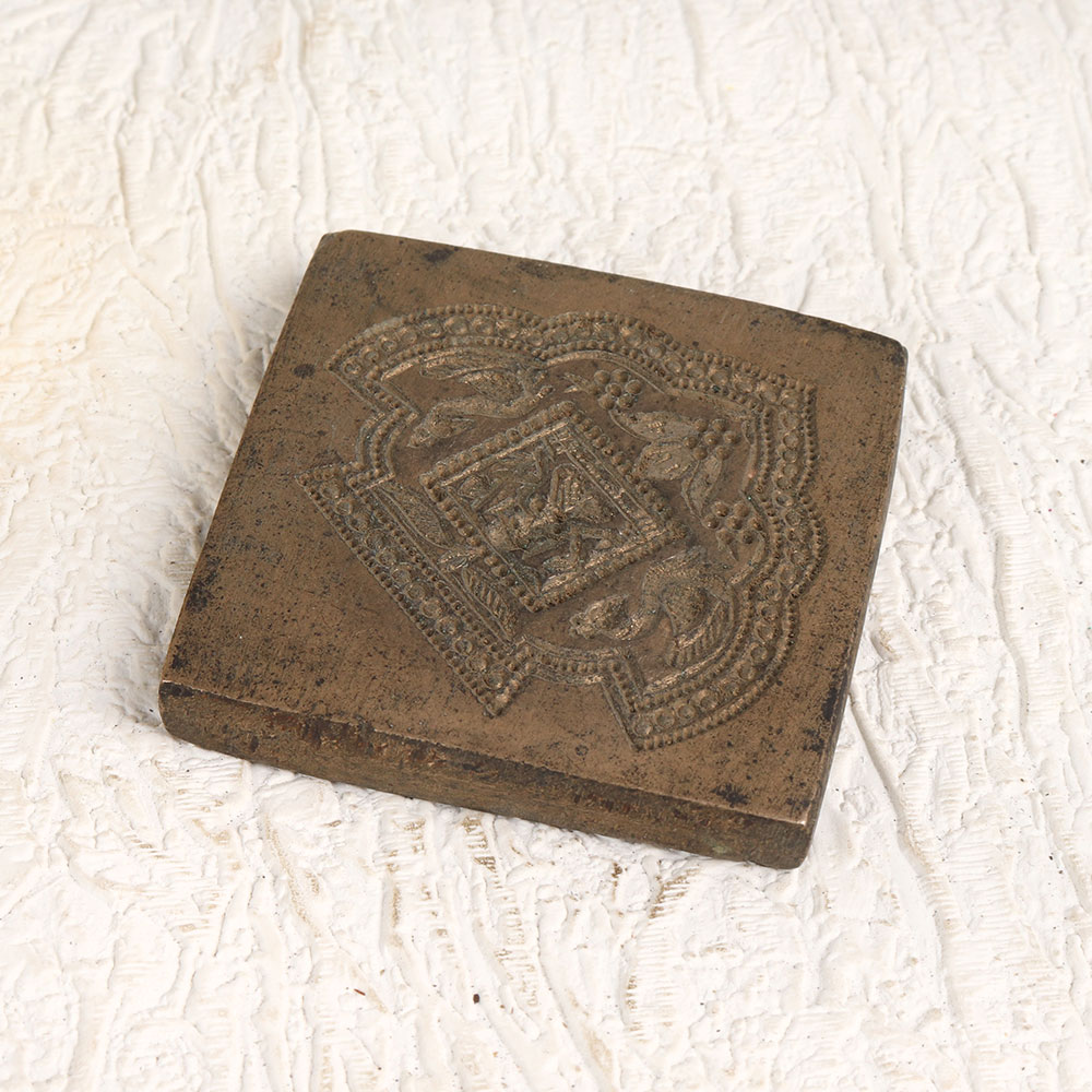 Decorate your interior with a touch of timeless elegance and Indian craftsmanship with this Vintage Bell Metal Jewelry Mold. Crafted by highly skilled artisans in India, this square-shaped mold boasts a rich antique brown finish that exudes a sense of history and authenticity. This piece is a testament to the heritage of bell metal craftsmanship, representing a traditional art form that has been passed down through generations. Made from high-quality bell metal, this mold has been an indispensable tool for gold and silver smiths in the creation of intricate jewelry designs. Now, it can be a captivating decorative piece for your home, office, restaurant, hotel, cafe, or shop. Its presence adds an air of sophistication and history to any setting, making it a remarkable conversation starter and a proud addition to your vintage collection. This Vintage Bell Metal Jewelry Mold also makes for a thoughtful and meaningful gift for your family, friends or relatives on special, festive, or auspicious occasions. It carries with it the essence of Indian heritage and the fine craftsmanship that has stood the test of time.