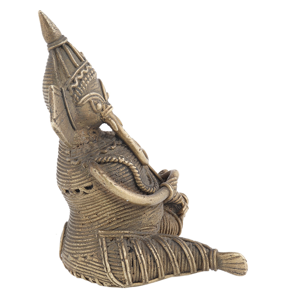 Lord Ganesha is the remover of obstacles and brings wealth and happiness. This brass musician ganesha statue is made by the artisans of the dhokra tribe. Gift it to your family and friends at weddings, anniversaries, and other special functions.