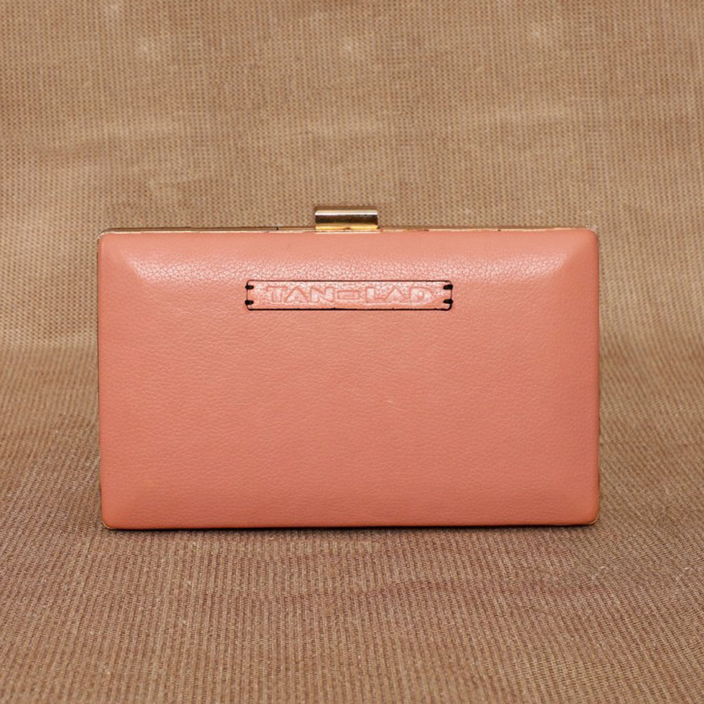Crafted from lovely Blush leather it has a clutch clasp closure that adds a touch of vintage charm while keeping your essentials secure. Inside, a center zip divider helps organize your items, making it easy to carry your phone, makeup, and wallet. Hand held this clutch and add charms in your evening events.