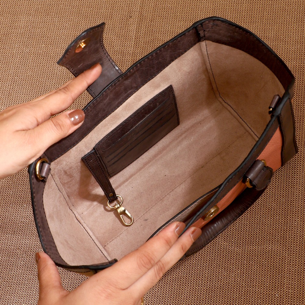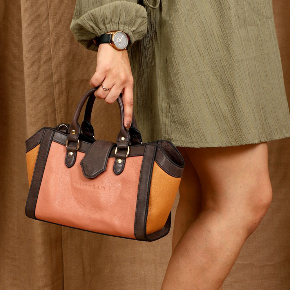Crafted in gorgeous Blush, Peach and Black Currant leather, this handbag has a magnetic loop closure, combining ease and elegance. Though petite, the Little Serena offers ample space for your mobile phone, wallet, and a touch of make-up, making it ideal for both day-to-day activities and special occasions.