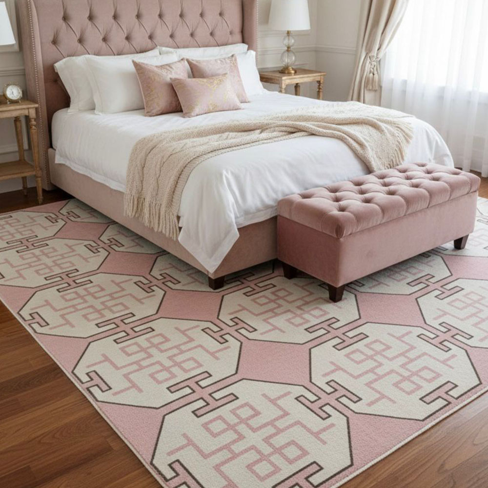 This sophisticated artisanal carpet brings vibrancy to private space. Its colorfast dyes maintain beauty and soft fibres cushion each step invite warmth, for hosts curating inviting homes. Handcrafted in India for generations. It radiates warmth and culture in every knot.