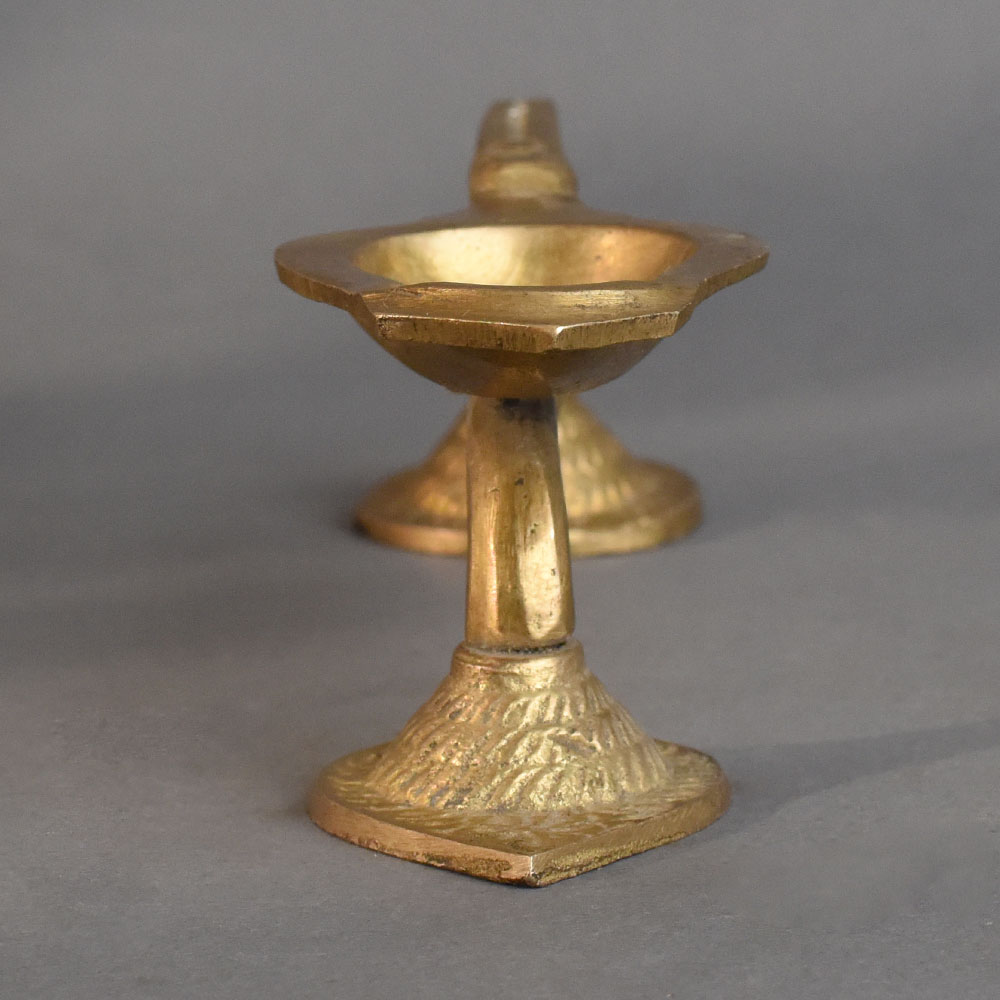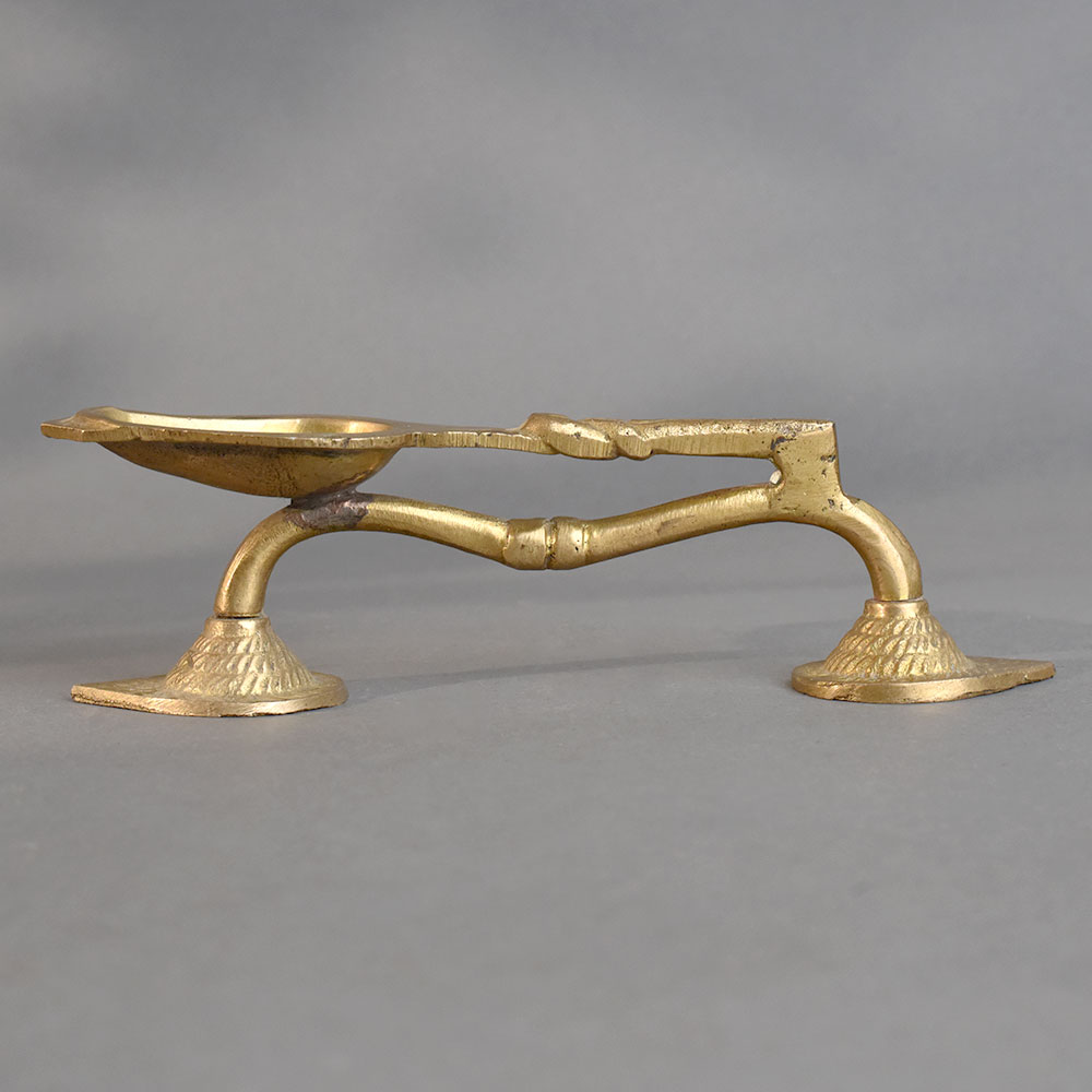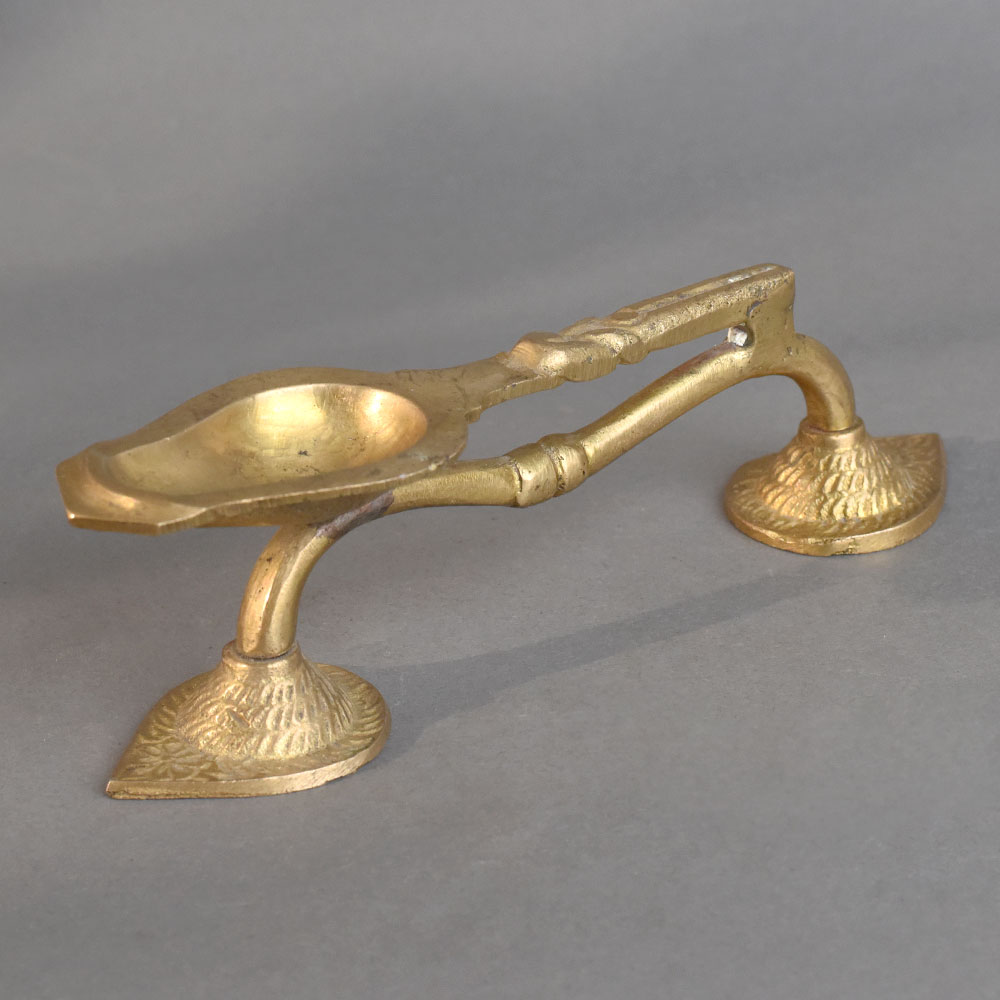 - Vintage brass aarti oil lamp with artistically designed handle
