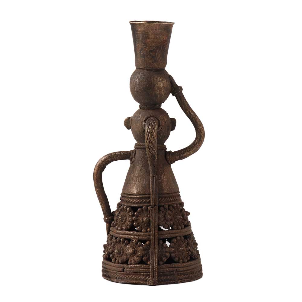 A tempting brass candle stand carved in doll shape with jali work. Handcrafted by skilled artisans, this brass candle holder will add vintage style flair to your home, office, restaurant or hotel interior. Bring this exquisite piece to your home and place it on your table or dining table and place a candle on it to enjoy a memorable dinner with your life partner or family. With its attention to detail, this brass candle holder is an amazing artefact for your vintage collection and a gift for a special or festive occasion for your family and friends.