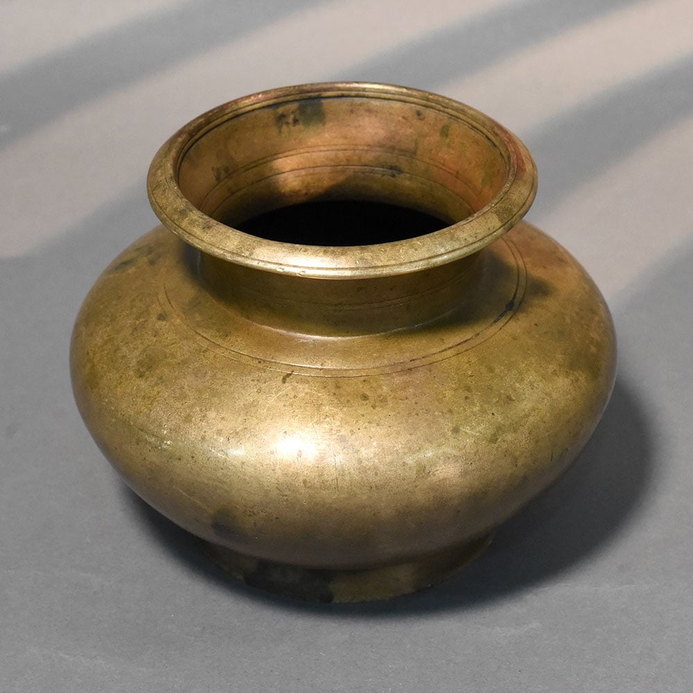 This handcrafted brass classic vintage finish traditional kalash represents timeless simplicity rooted in Indian ritual culture. With its smooth rounded body, broad neck, and balanced proportions, this piece reflects a clean, minimal design that focuses on form and function. Made from solid brass, the surface carries a natural aged patina with subtle tonal variations and organic marks that enhance its authenticity. The understated finish gives it a soft antique appeal, allowing the natural beauty of brass to stand out without heavy ornamentation. Each piece bears slight variations, making it uniquely handcrafted. The kalash is designed for versatile use in pooja rituals, sacred offerings, and water storage, making it an essential addition to spiritual practices. Its wide mouth ensures ease of use, while the sturdy base provides stability during rituals. The simple form makes it practical for both daily use and ceremonial occasions. Beyond its ritual function, this brass vessel also works beautifully as a decor accent. Its muted golden tone and classic silhouette blend seamlessly into traditional settings while also complementing modern interiors. Whether placed in a temple space, on a shelf, or used as a decorative object, it adds a sense of heritage and warmth. Ideal for spiritual use, gifting, or collecting handcrafted objects, this kalash offers durability, elegance, and timeless cultural significance.