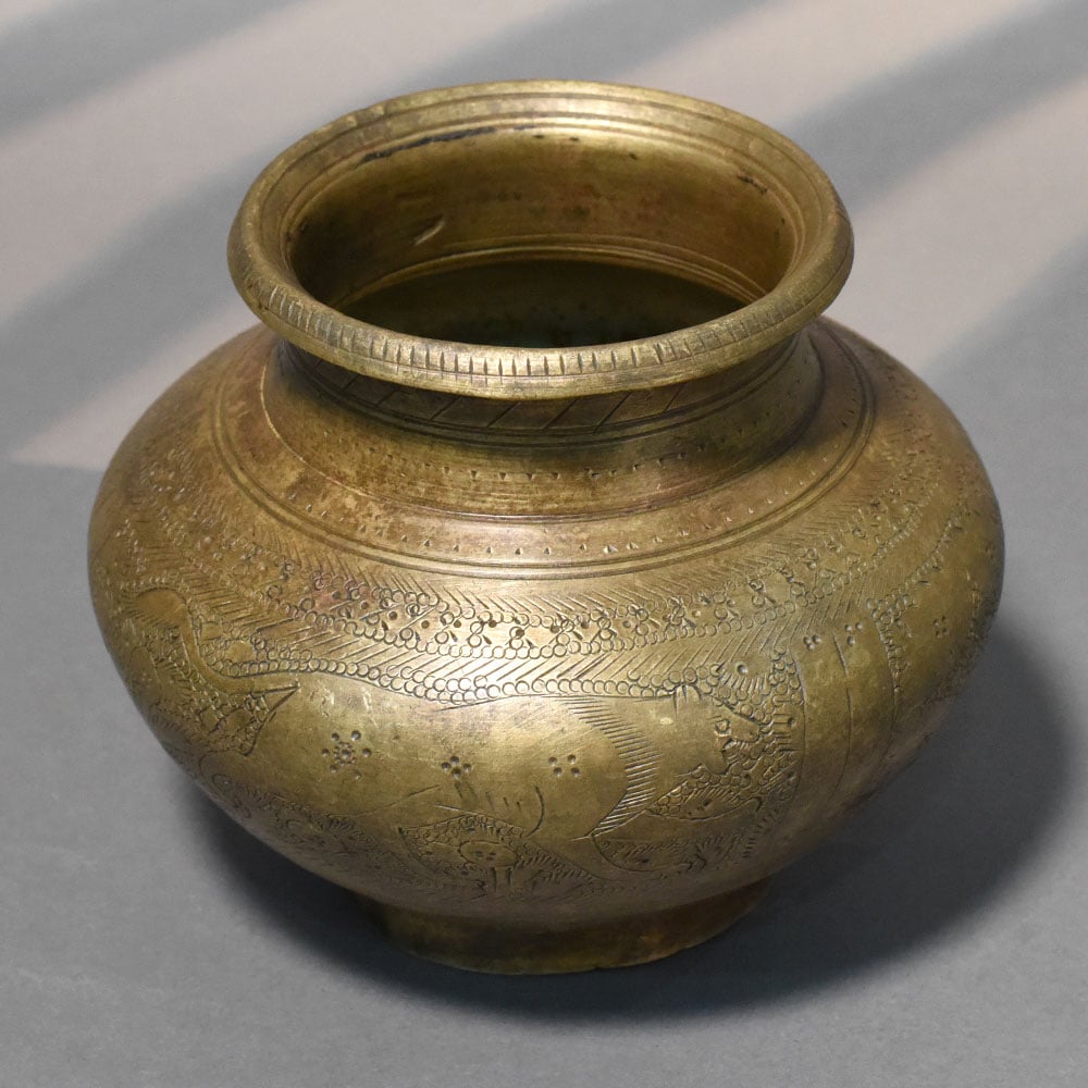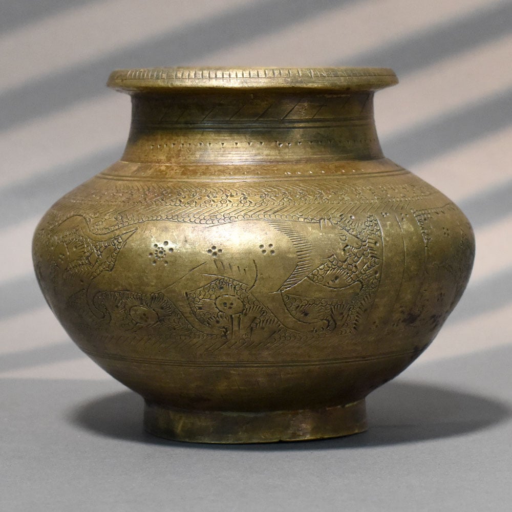 - Handcrafted solid brass kalash with animal engravings
