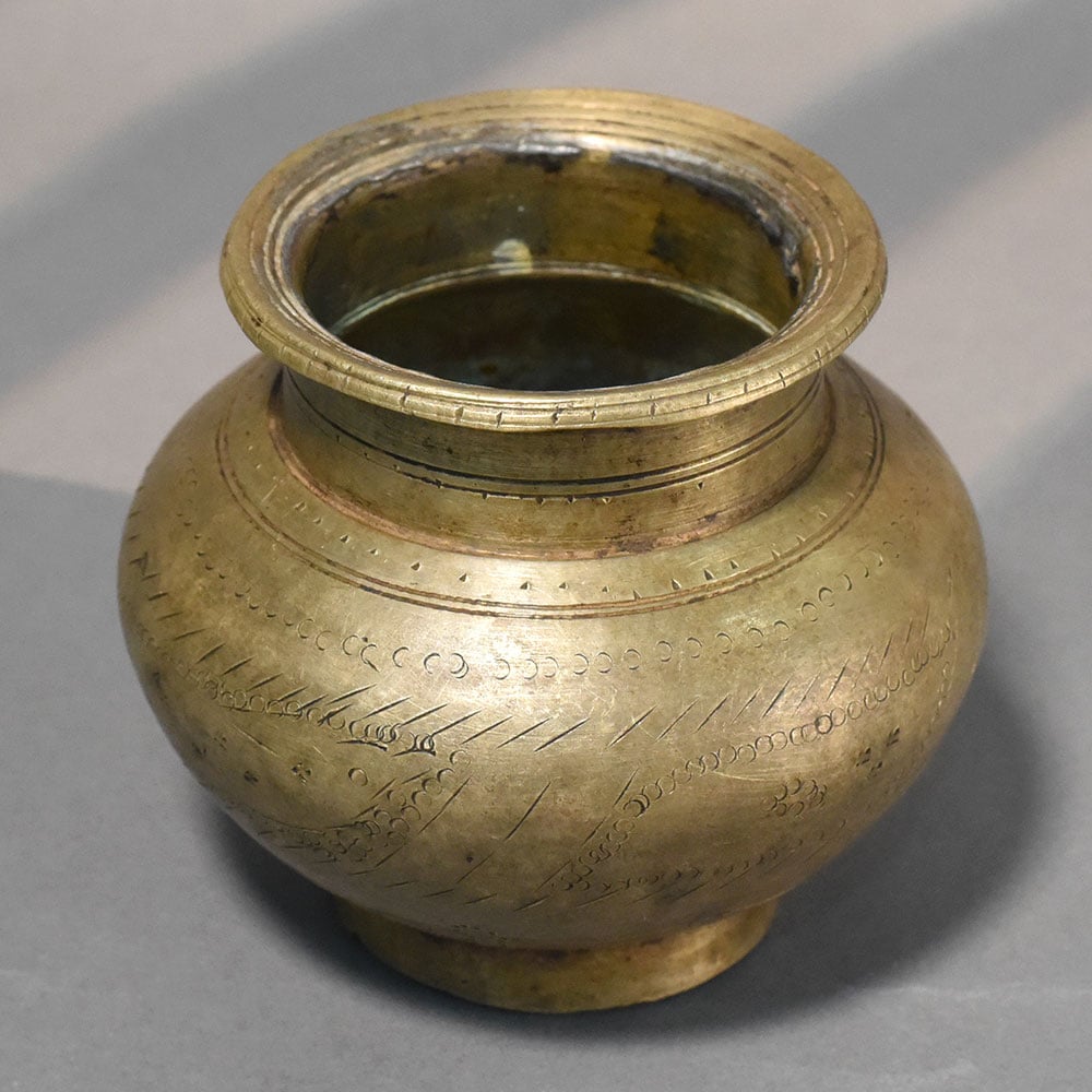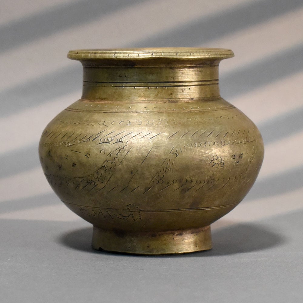 - Handcrafted solid brass etched ritual pot