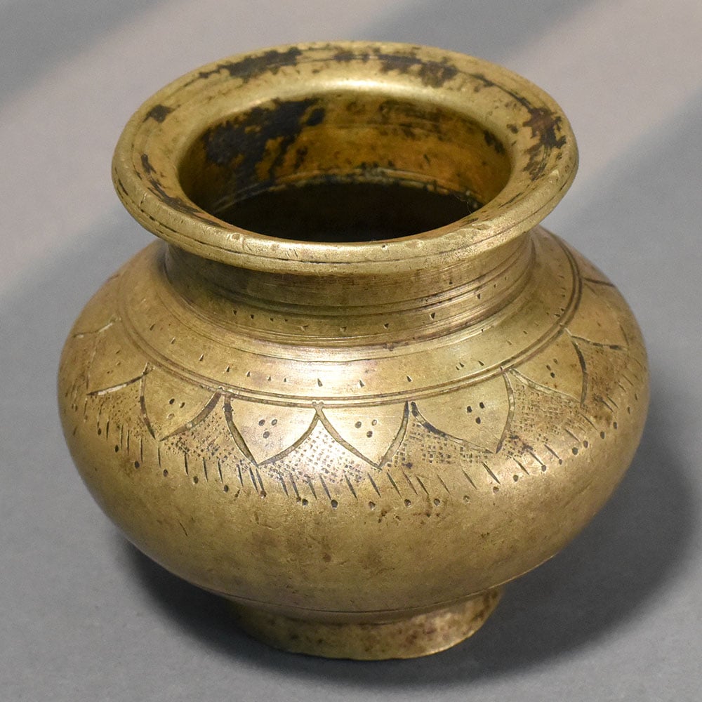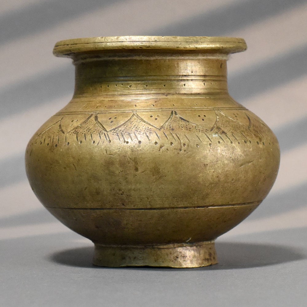 - Handcrafted solid brass ritual pot with floral etching
