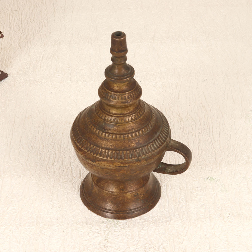 Decorate your home with our Vintage Brass Oil Lamp that is a timeless masterpiece meticulously handcrafted by professional Indian artisans. Crafted from high-quality brass, this lamp exudes an air of sophistication with its antique brown finish, adding a touch of vintage charm to any space. The inclusion of a sturdy handle not only enhances its functionality but also lends a rustic elegance to the design. Versatile and ornate, this oil lamp is a perfect addition to homes, offices, restaurants, hotels, or cafes, bringing a warm and inviting ambiance. Its antique allure makes it an ideal choice for collectors of vintage treasures, showcasing a blend of craftsmanship and history. Surprise your family, friends or relatives with a unique and thoughtful gift on special, festive, or auspicious occasions, as this lamp symbolizes tradition and timeless beauty.