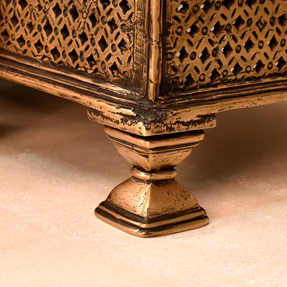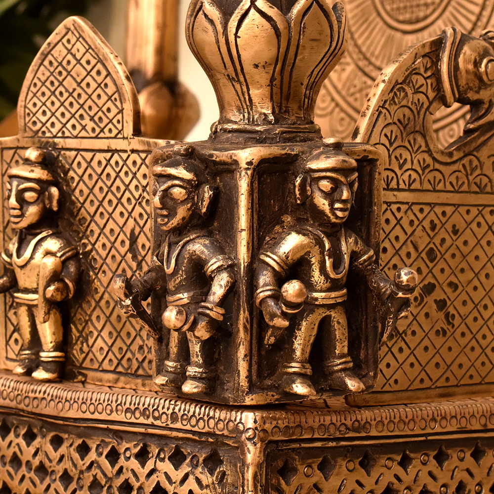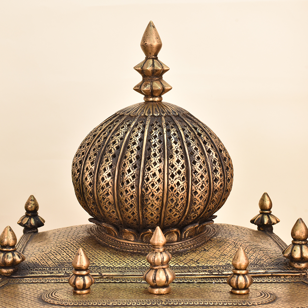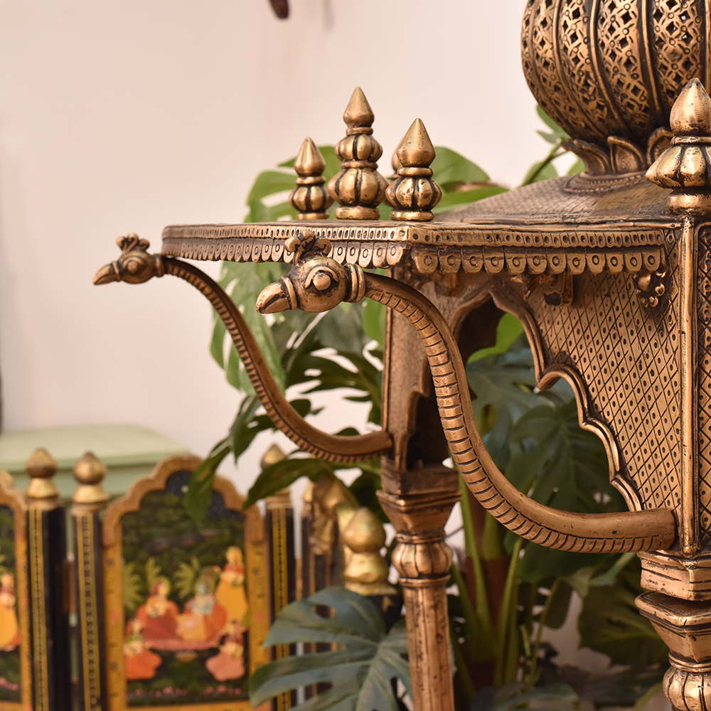 Immerse yourself in the rich cultural heritage of India with our exquisite brass temple, inspired by the iconic architecture of Rajasthan. Crafted using traditional techniques passed down through generations, this stunning piece is a work of art that will captivate all who behold it. This brass temple is more than just a decorative accent - it's a portal to another world, a window into the vibrant tapestry of Indian culture. The ornate carvings and iconic silhouette transport you to the bustling streets of Rajasthan, evoking a sense of wonder and timelessness. Whether you're drawn to its captivating beauty or seeking to incorporate meaningful cultural elements into your home, this temple is a truly special piece that will nourish your soul. Display this brass temple with pride in your living room, meditation space, or home office, and let its commanding presence elevate the entire room. Use it as a platform for your own spiritual practice, or simply enjoy its beauty as a breathtaking work of art that celebrates the rich heritage of India. Invite the splendor of Rajasthan into your life and let this magnificent temple inspire you every day.