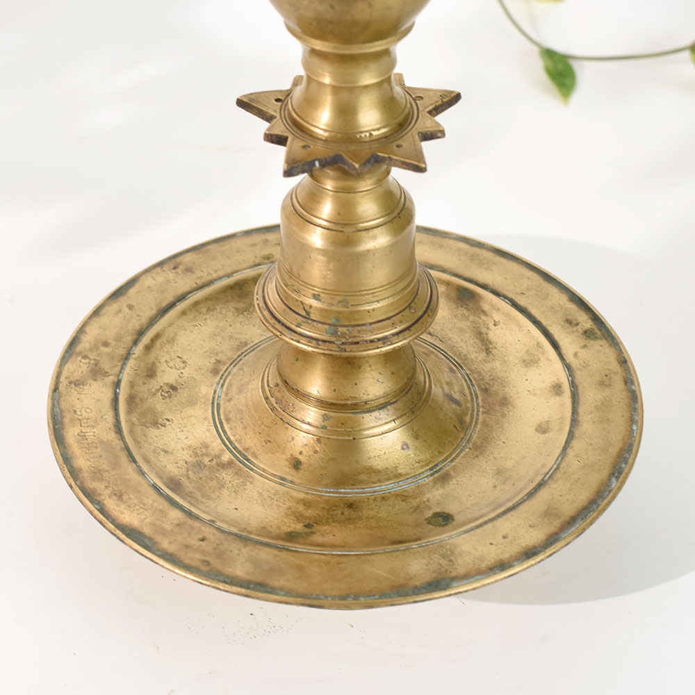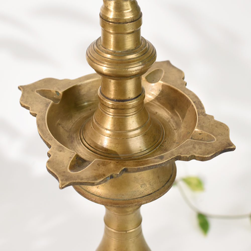 - Classic South Indian brass lamp stand with ornate finial