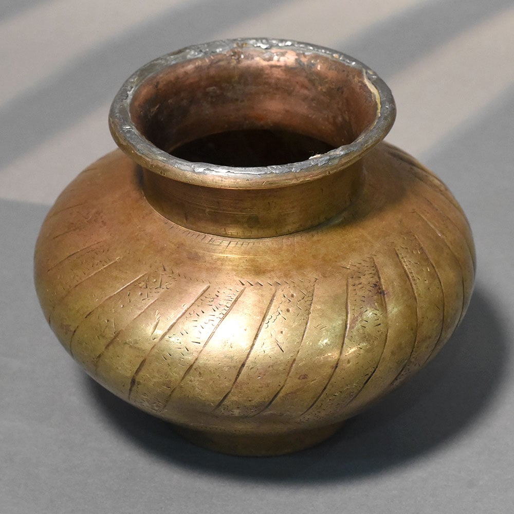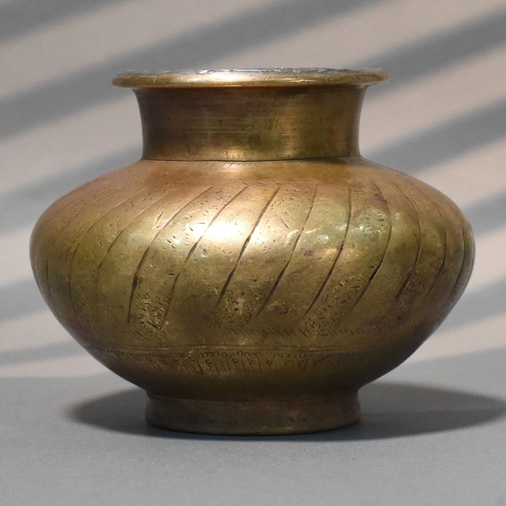 - Handcrafted solid brass kalash with textured detailing
