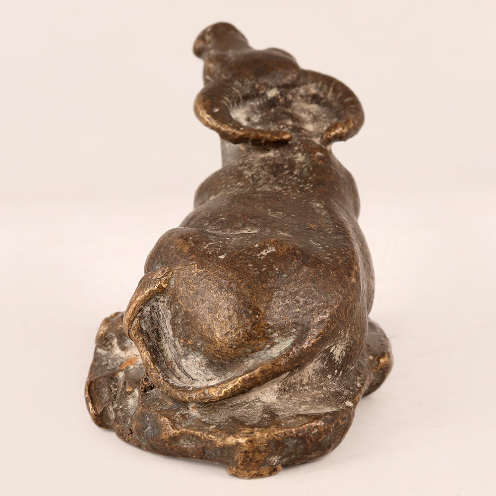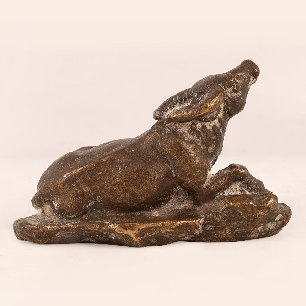 Enhance your home decor with the timeless charm of this vintage Ox brass statue. Crafted with meticulous attention to detail by highly skilled craftsmen in the English Art tradition, this masterpiece showcases a sitting Ox on a platform, all adorned with an antique brown finish that exudes a sense of history and elegance. With its versatile design, this stunning statue can find its place in various settings, whether it's at home, in your office, a restaurant, hotel, cafe, or shop. Its remarkable craftsmanship makes it a captivating decoration piece that adds a touch of sophistication to any space. Beyond its aesthetic appeal, this brass Ox statue serves a practical purpose too. Its weighty presence makes it a functional paperweight, adding a touch of distinction to your workspace. Furthermore, for vintage enthusiasts and collectors, this piece is a treasure waiting to be added to your collection. Whether you're celebrating a special occasion or simply want to show your affection, this vintage brass Ox statue makes for an exceptional gift choice. Its symbolic significance and timeless beauty ensure it will be cherished on festive or auspicious occasions.