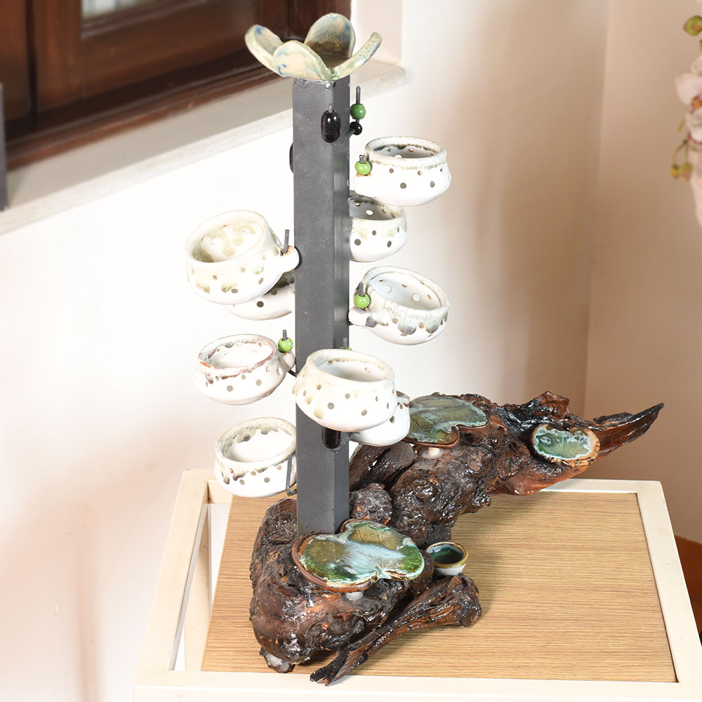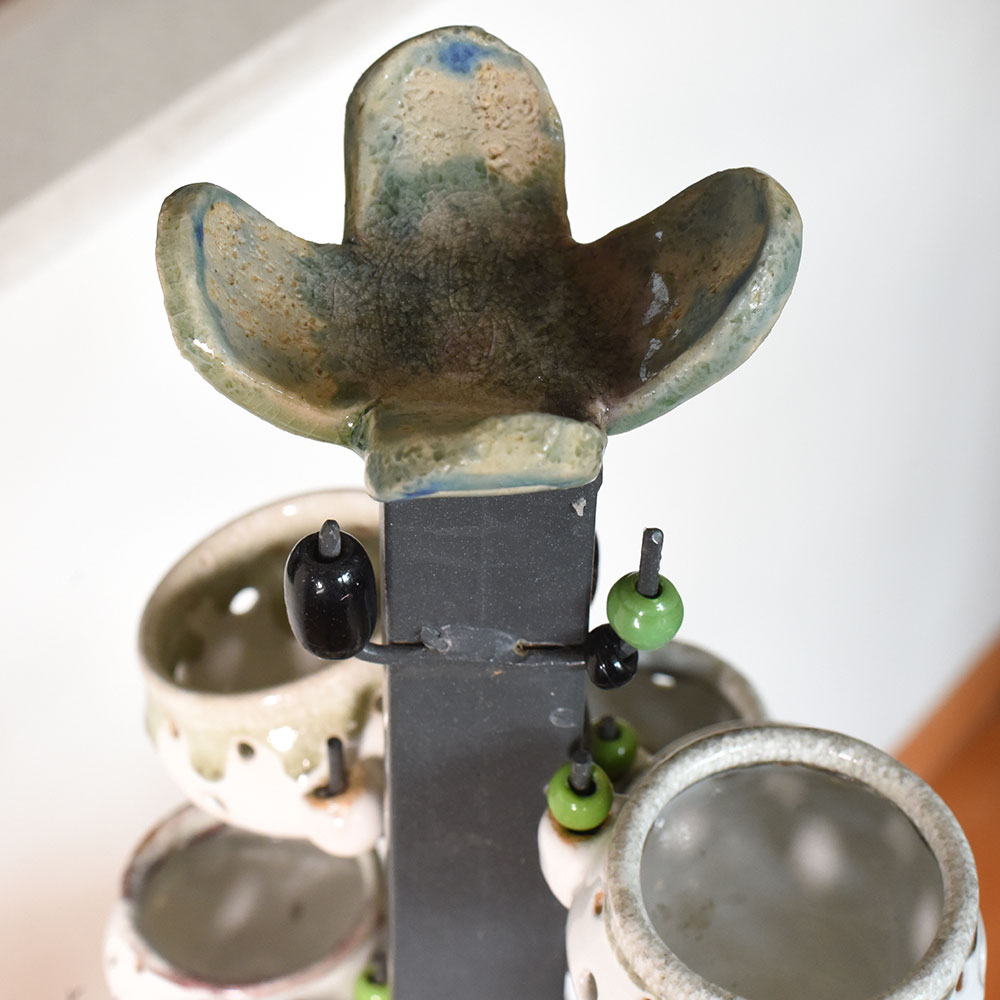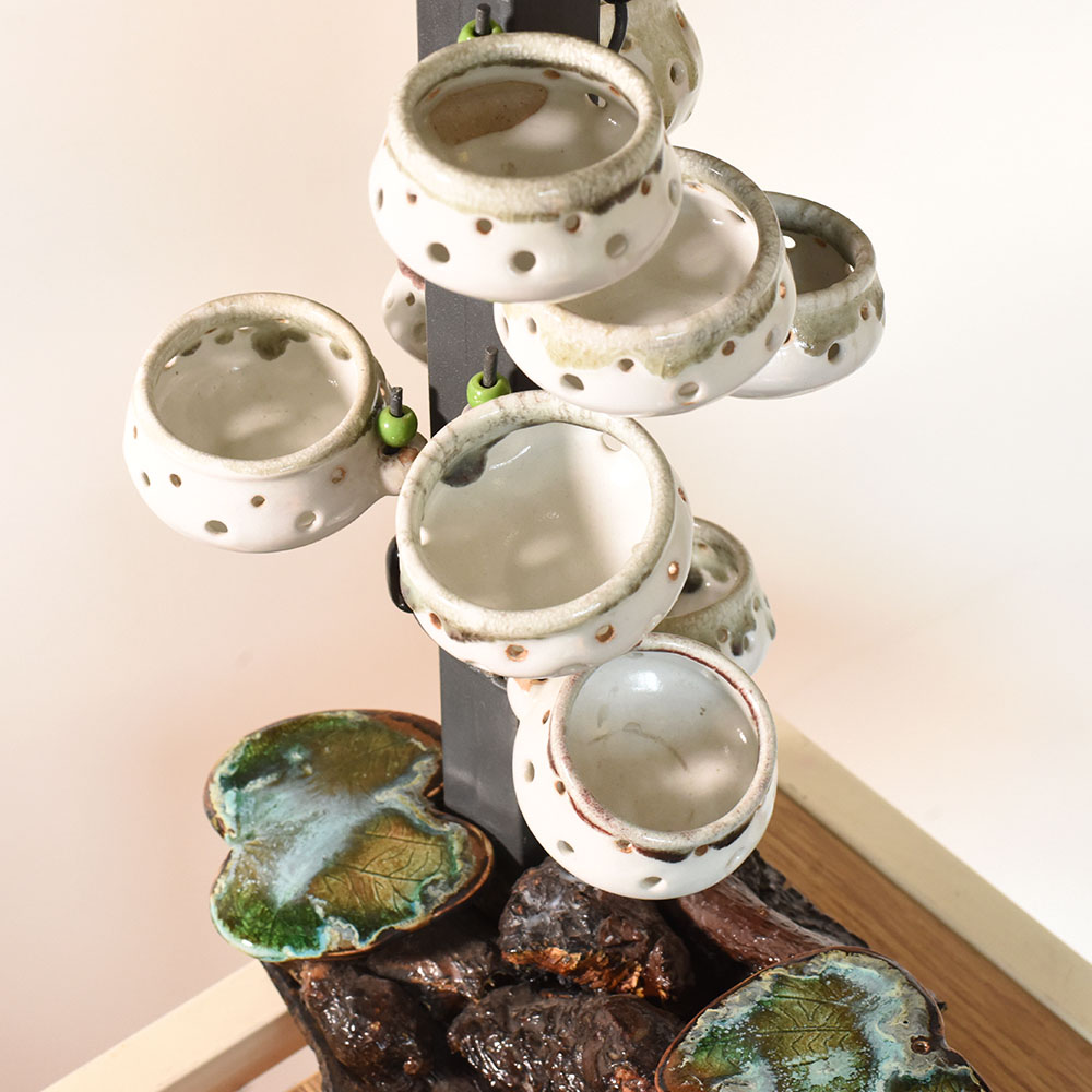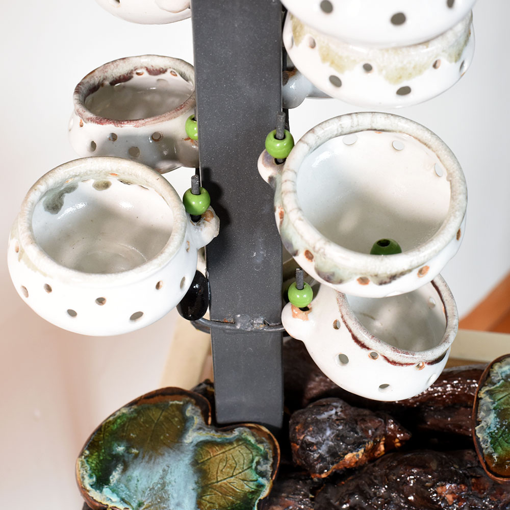 Ceramic Artist Meena Vohra brings her signature artistry to this arrangement of hanging pots. The composition features varied shapes and balanced suspension offering a playful accent for vertical gardens and artful interiors. Each piece is handmade packed and quality checked by Indianshelf. Playful Hanging Pots for Vertical Art These playful hanging pots add vertical interest to any setting. Their sculptural forms and inviting shapes create dynamic focal points perfect for bringing life to window gardens and artistic installations. Set of pots suspended gracefully with balanced forms Entirely hand formed by skilled craftspeople Solid craftsmanship offers reliable long term beauty Specifications and Traditions Origin: India. Safely packed and quality checked by Indianshelf Crafted without any mechanised assistance Enduring ceramic keeps shape and detail intact Use and Display Recommendations Display in kitchens bathrooms or balconies Memorable gesture for engagements or graduations Adds charm to hospitality reception areas Adds authenticity to traditional or heritage events Maintaining Your Hanging Pots Remove dust using a soft brush or cloth. Avoid excessive moisture and handle each pot gently when rearranging. Your Questions Addressed Are the hanging pots sold as a set Yes the sculpture includes multiple pots arranged together to create a cohesive look. Can plants be placed inside These pots are decorative and light plants or dried stems may be used carefully without adding water. How should I install them Secure the hanging structure to a sturdy support and handle gently when adjusting. Are the pots identical Each pot is hand shaped so slight variations in form and size add to their charm. Supporting Traditional Craft The design showcases cultural heritage and fine craftsmanship. Artisans manually create each piece giving it singular personality.