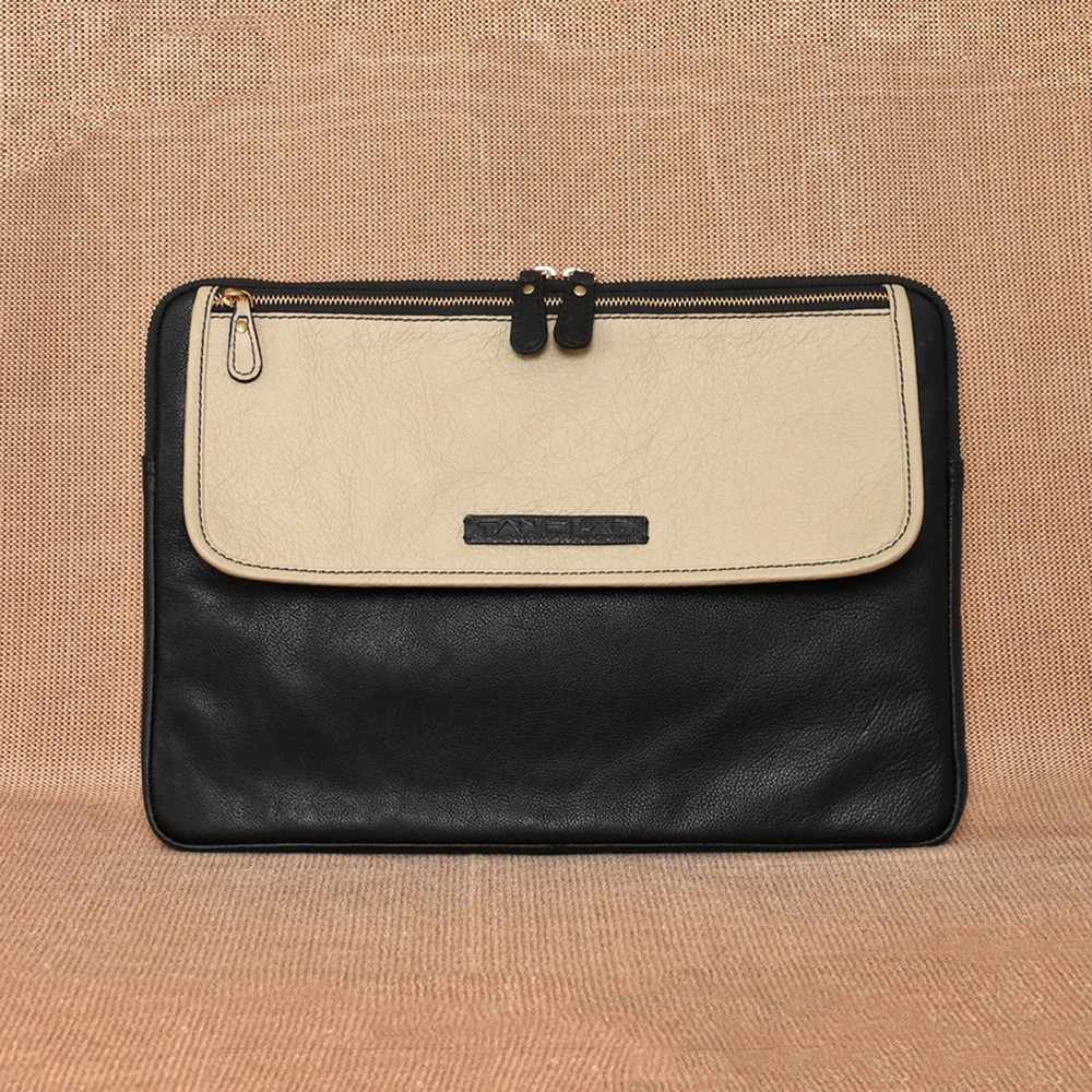 Crafted with amazing Charcoal & Honey Dew leather, it features a 2-way zipper closure, and the main compartment offers secure storage for your laptop or tablet. On the outside, youll find a hanging zipper compartment which is perfect for small accessories like chargers and pens. Adding to the smart design is a hidden pocket under the front compartment, providing discreet storage for documents or valuables you need to keep close but out of sight.
