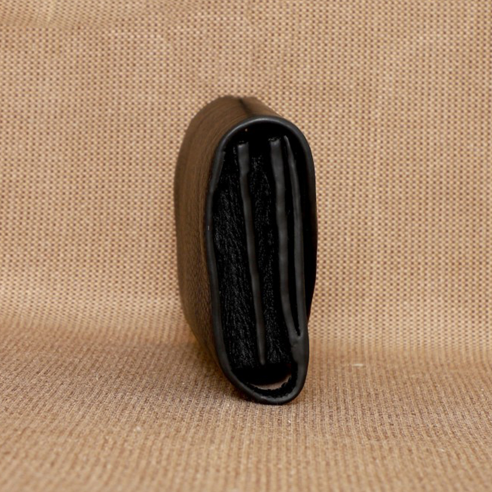 Crafted in lovely Charcoal leather. The wallet features a flap closure with a magnetic snap button for easy access and secure storage. Inside, you'll find two compartments offering ample space for your essentials. The card holder section is designed to hold 10-12 cards, keeping everything organized and accessible. For your small valuables, there's a coin pocket with a flap closure, ensuring that your coins and tiny essentials stay in place.