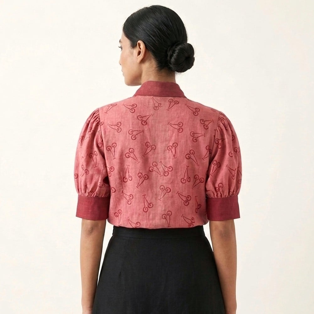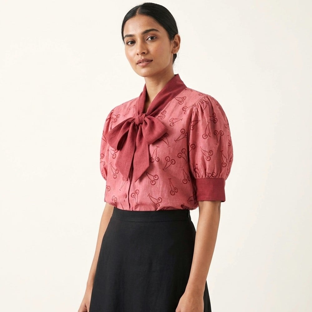 This handcrafted cherry knot top with puff sleeves is designed to bring a playful yet elegant charm to your everyday wardrobe. Featuring an all-over cherry print and a statement bow tie neckline, it creates a standout look that feels both chic and effortless.