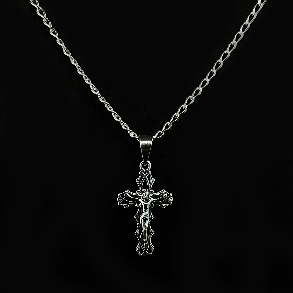 The cross silhouette is rendered with balanced proportions and refined hand finishing. Its timeless structure offers visual clarity and spiritual presence without excess ornamentation.
