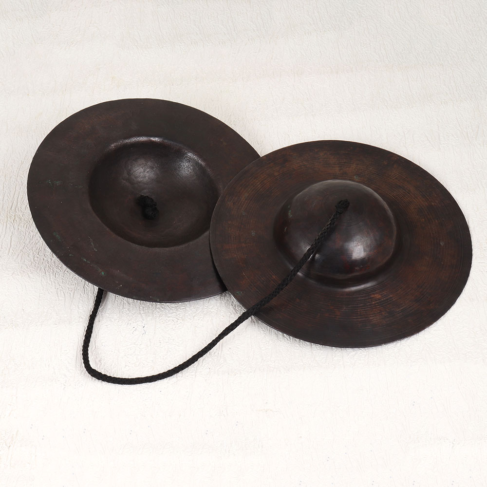 Reawaken the mystical allure of ancient Indian music with this antique bell metal cymbal. Handcrafted in the Himalayan foothills by generations of skilled artisans, this Manjeera unleashes a sound that transports. Each ring of this cymbal cascades with a sustain that instantly mesmerizes. Musicians can harness its hypnotic power to create captivating rhythms that move audiences. The mystical tones carry centuries of musical tradition in every note. Created using time-honored techniques, this cymbal carries the very soul of Indian percussion. The plain brown patina reflects its heritage and artisanal craftsmanship. For musicians who understand the magic of sound, this vintage Manjeera unlocks rhythms that stir the spirit. Let its ancient voice transport you and your listeners.