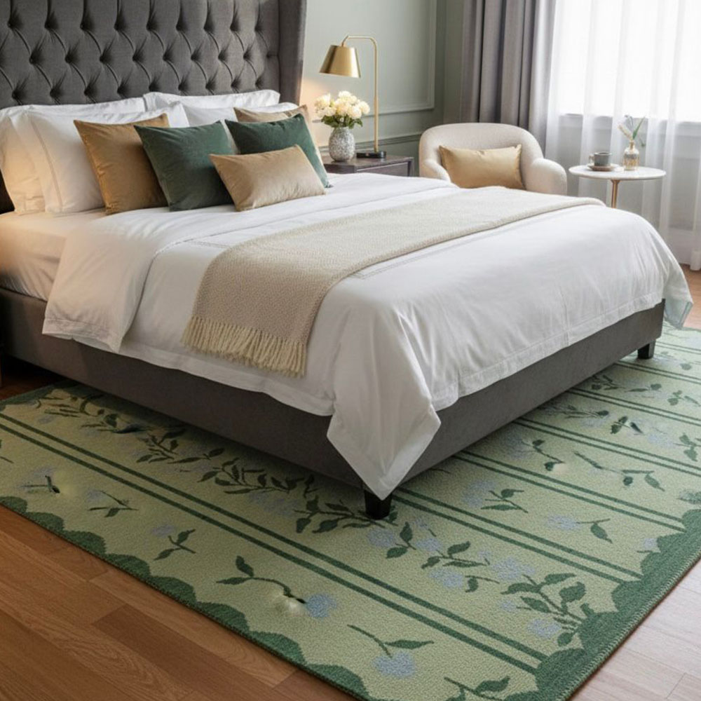 Ensure lasting appeal by using a soft broom or vacuum on low, shifting its position regularly to equalize wear, and shield it from strong sunlight and spills. Additionally, schedule a professional wash every two years to preserve quality. When storing, keep it rolled in a cotton cloth in a dry place.