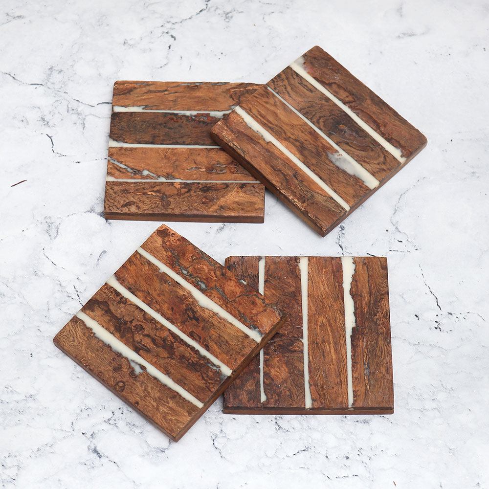 Made from sturdy, high-quality wood, these coasters are built to last. Their resilience ensures they can handle a variety of beverages, from hot coffee to cold drinks, while still maintaining their pristine appearance. The coasters are easy to clean and care for, allowing you to enjoy them for years to come.