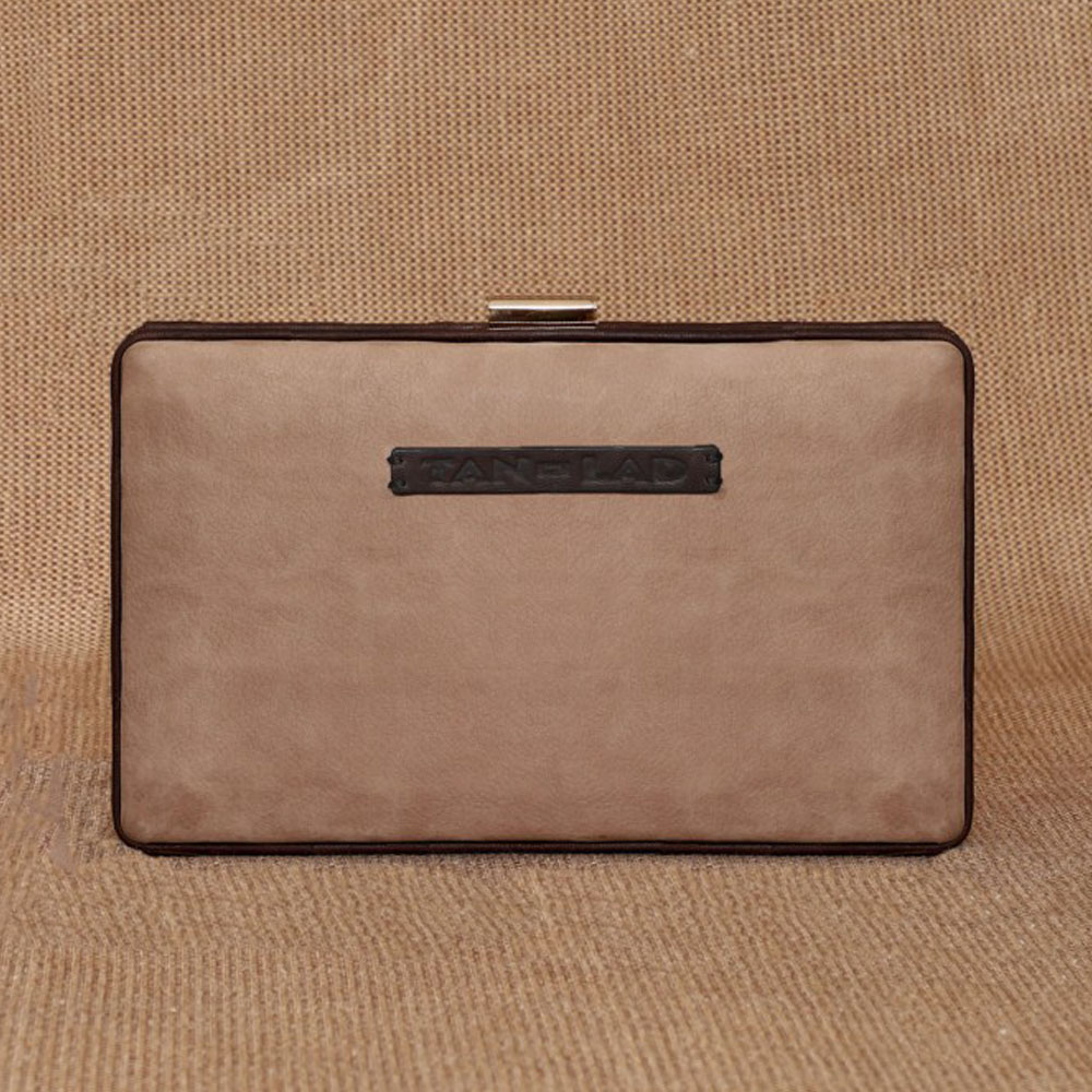 Crafted from gorgeous Dove and Dark Chocolate leather, it has a clutch clasp closure that adds a touch of vintage charm while keeping your essentials secure. Inside, a center zip divider helps organize your items, making it easy to carry your phone, makeup, and wallet. Hand held this clutch and add charms in your evening events.