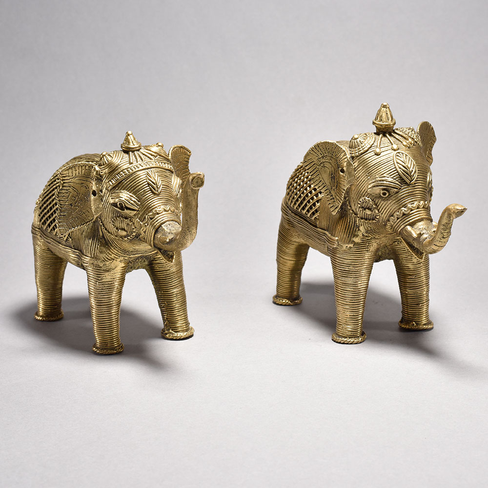 Bring the beauty of India's rich tribal heritage into your home with this stunning pair of large-scale metal elephant sculptures. Crafted with intricate jalli work and exquisite detailing, these majestic creatures will captivate all who lay eyes on them.These regal elephants are more than just beautiful objects - they're a celebration of India's vibrant cultural traditions. Display them proudly and let their timeless elegance transport you to the heart of the subcontinent. Whether a gift or a treat for yourself, this pair of tribal art masterpieces will be cherished for years to come. Handmade from premium metal in the Orissa region of India This timeless piece is handcrafted by skilled artisans using time-honored techniques, ensuring each creation is truly one of a kind. Its versatile design makes it suitable for living rooms, bedrooms, offices, or meditation spaces, bringing a sense of heritage and style wherever it is displayed. This timeless piece is handcrafted by skilled artisans using time-honored techniques, ensuring each creation is truly one of a kind. Its versatile design makes it suitable for living rooms, bedrooms, offices, or meditation spaces, bringing a sense of heritage and style wherever it is displayed.