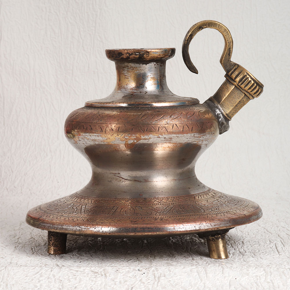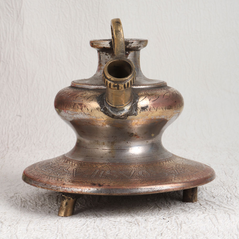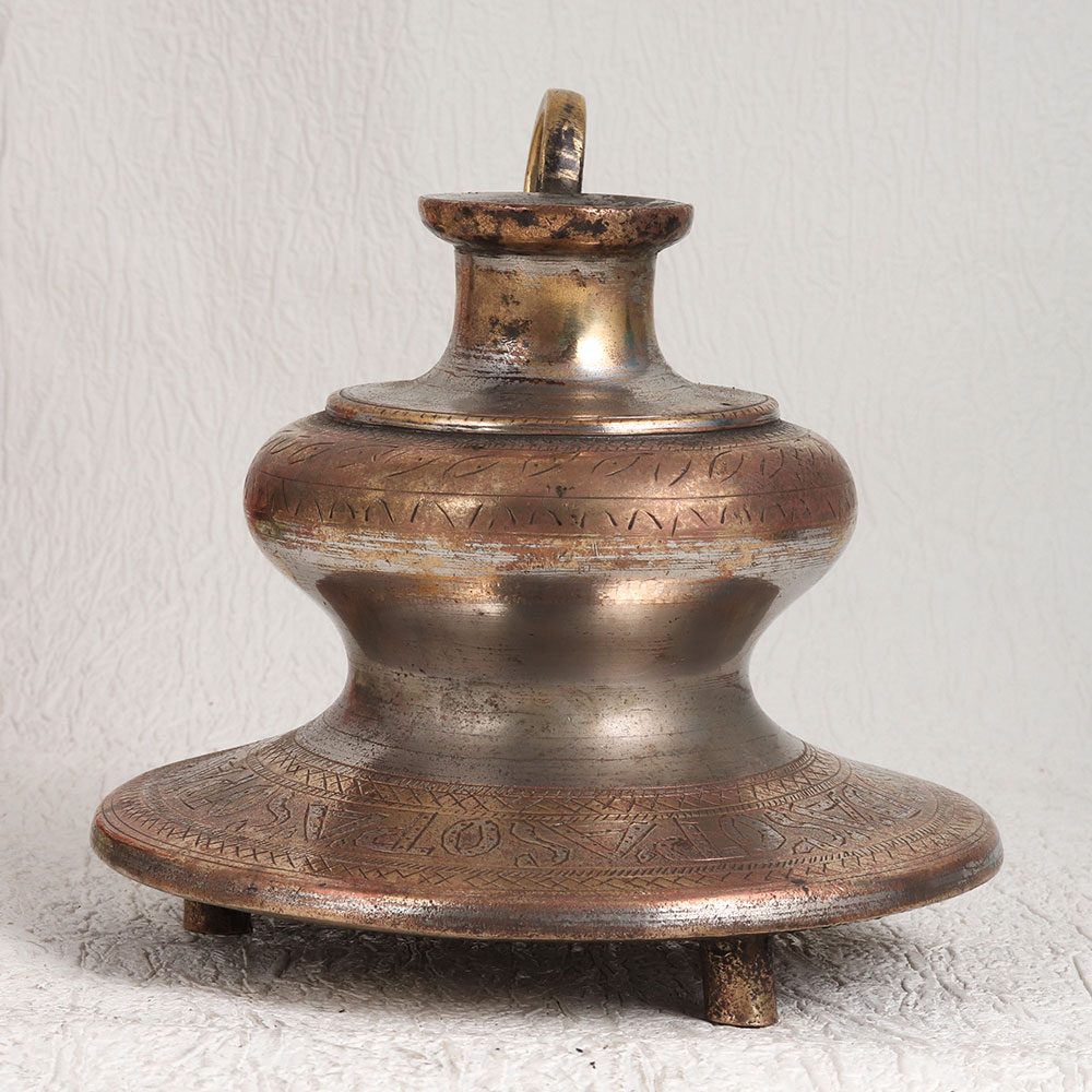 A Vintage Brass Hookah Base which is a timeless masterpiece handcrafted by talented Indian artisans. Crafted from high-quality brass, this hookah base boasts a stunning antique brown finish that adds an air of sophistication to any space. The real allure of this piece lies in its intricate engravings, showcasing the artistry and craftsmanship of yesteryears. This antique-inspired hookah base is a versatile addition to your home, office, restaurant, hotel, cafe, or shop's prayer room, effortlessly enhancing its aesthetics. It even doubles as a unique indoor flower pot, bringing an unconventional touch to your floral arrangements. Whether you're a collector of vintage items, an exhibition curator, or simply someone looking to add a touch of history to your surroundings, this hookah base is a splendid choice. It can also serve as a thoughtful gift for your family, friends or relatives on special, festive, or auspicious occasions, making it a truly memorable and meaningful present.