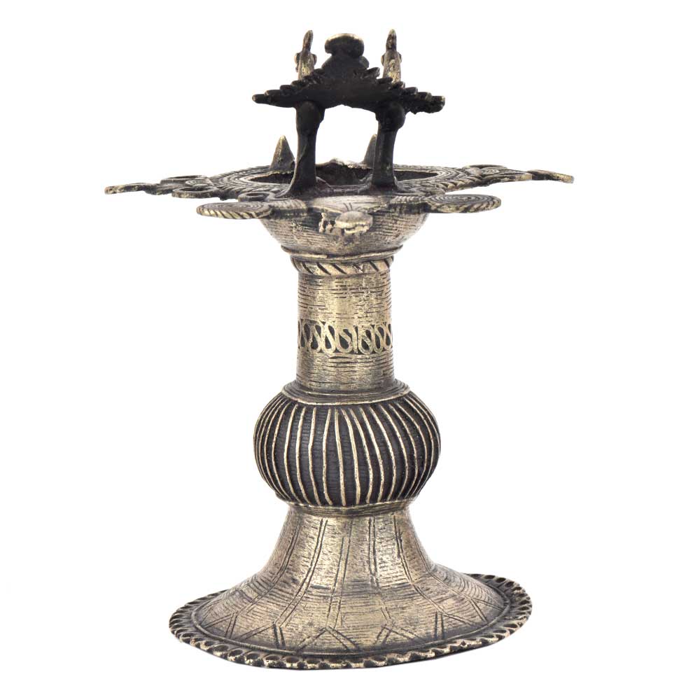 Handcrafted using old lost wax technique primarily practiced in Orrisa and West Bengals by the local or tribal artisans. In this technique the molten wax is poured into desired clay mould and when the wax melts the clay is broken and we get the desired metal object which is further polished to perfection. The Deep Cup Can Be Filled with Oil and Light a Cotton Wick. Diyas/ Oil Lamps are Considered Auspicious as in Hindu Religion. It is detailed with Elephant and Peacock Animals with Beautiful Details.