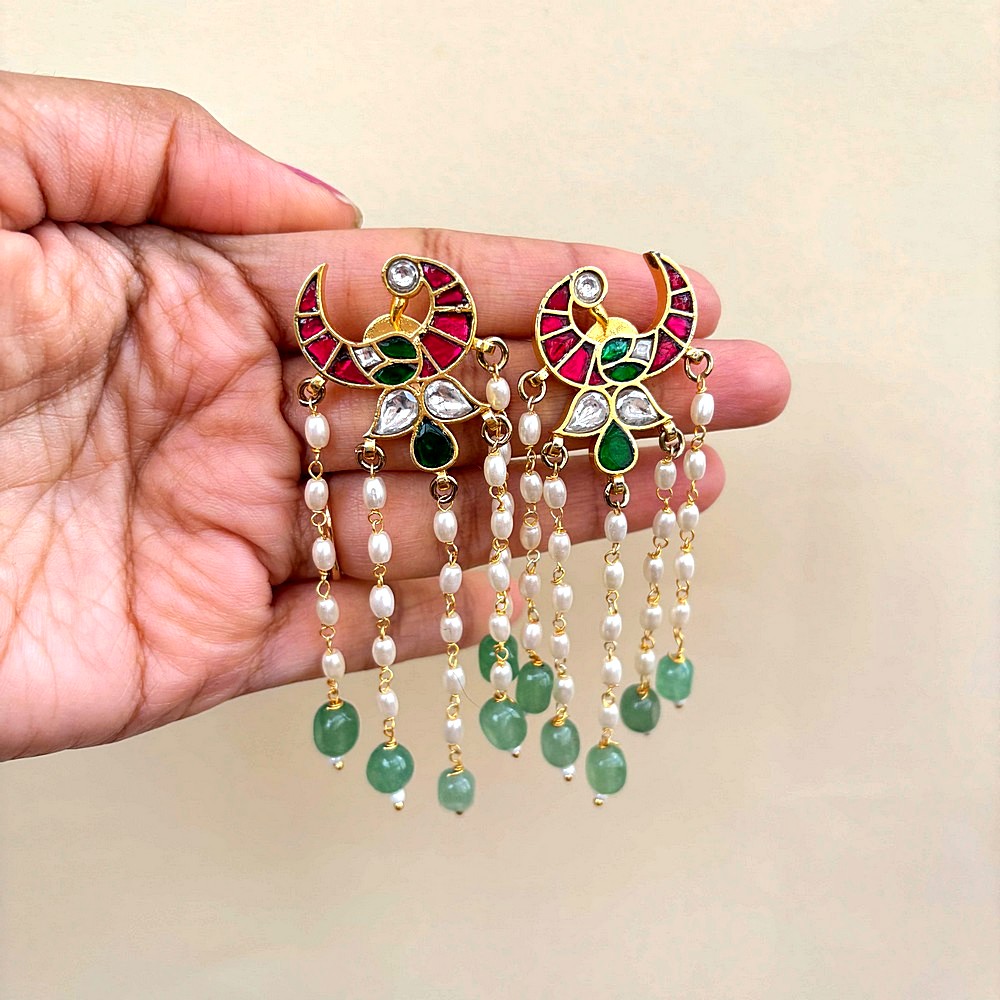 Experience Ethnic Pearl beauty through this handmade earrings design, where pearls meets artistic expertise. Perfect for gift givers and design lovers, it enriches any collection or décor with charm and meaning. Packed & quality-checked by Indianshelf.