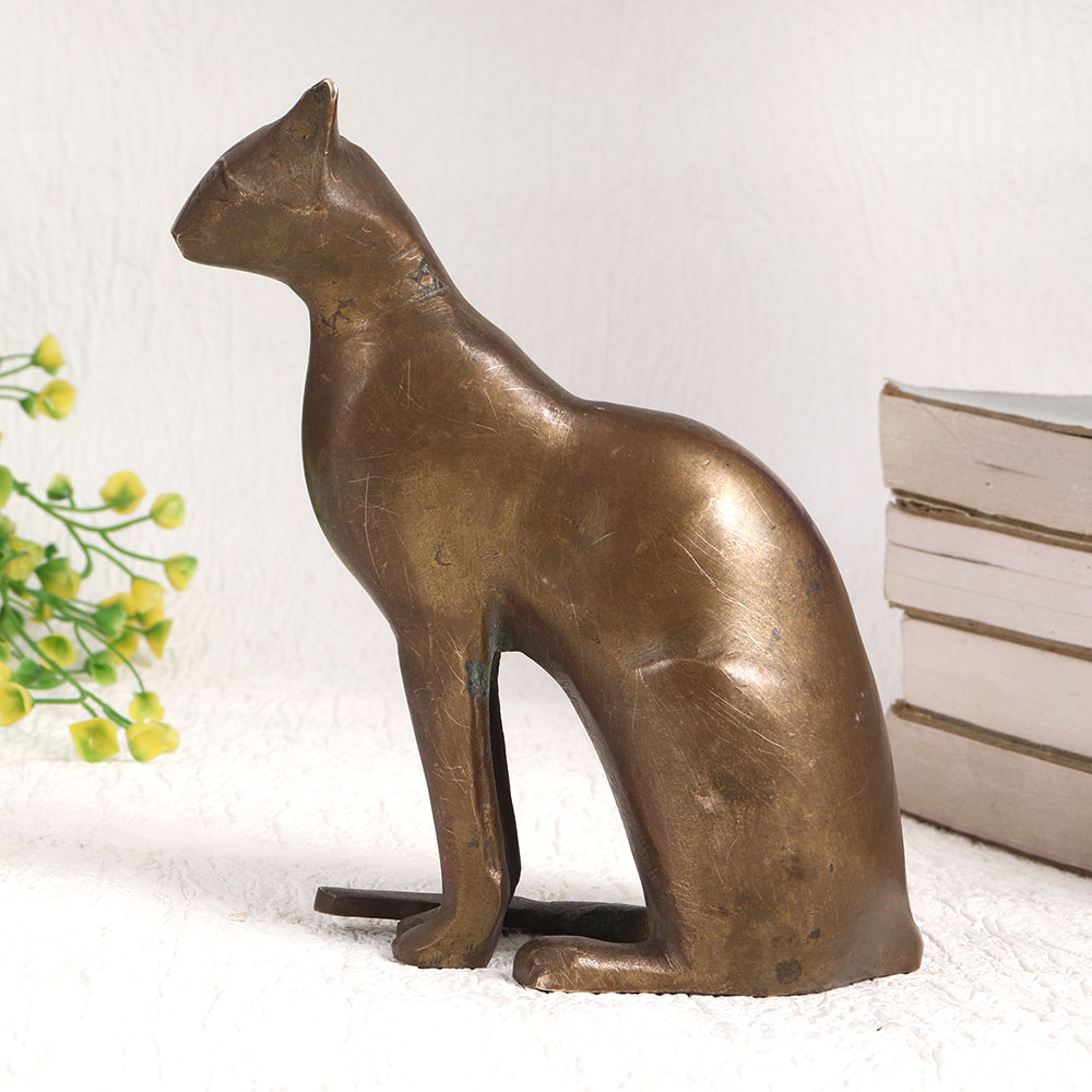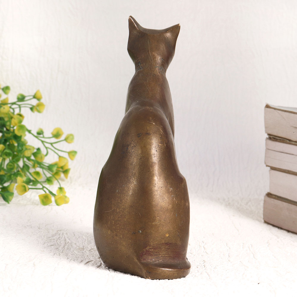 Buy a Brass Sitting Cat Statue online which is a testament to English Artistry and craftsmanship that will captivate your senses and elevate your decor. This stunning piece is handmade by talented artisans which boasts an antique brown finish that adds an air of vintage charm to any setting. Crafted with the utmost precision and care, this statue is cast in high-quality brass, ensuring its durability and timeless beauty. Its poised and regal stance makes it a versatile addition to any space – be it your home, office, restaurant, hotel, cafe, or shop. Imagine this elegant cat gracing your mantelpiece, adorning your dining table, or becoming a conversation starter in your establishment. It's not just a decorative piece, it's a symbol of refinement and elegance. For collectors, this statue is a must-have addition to your vintage collection, and for curators, it's a perfect exhibit centerpiece. Moreover, it makes for a thoughtful and memorable gift for your family, friends or relatives on special, festive, or auspicious occasions.