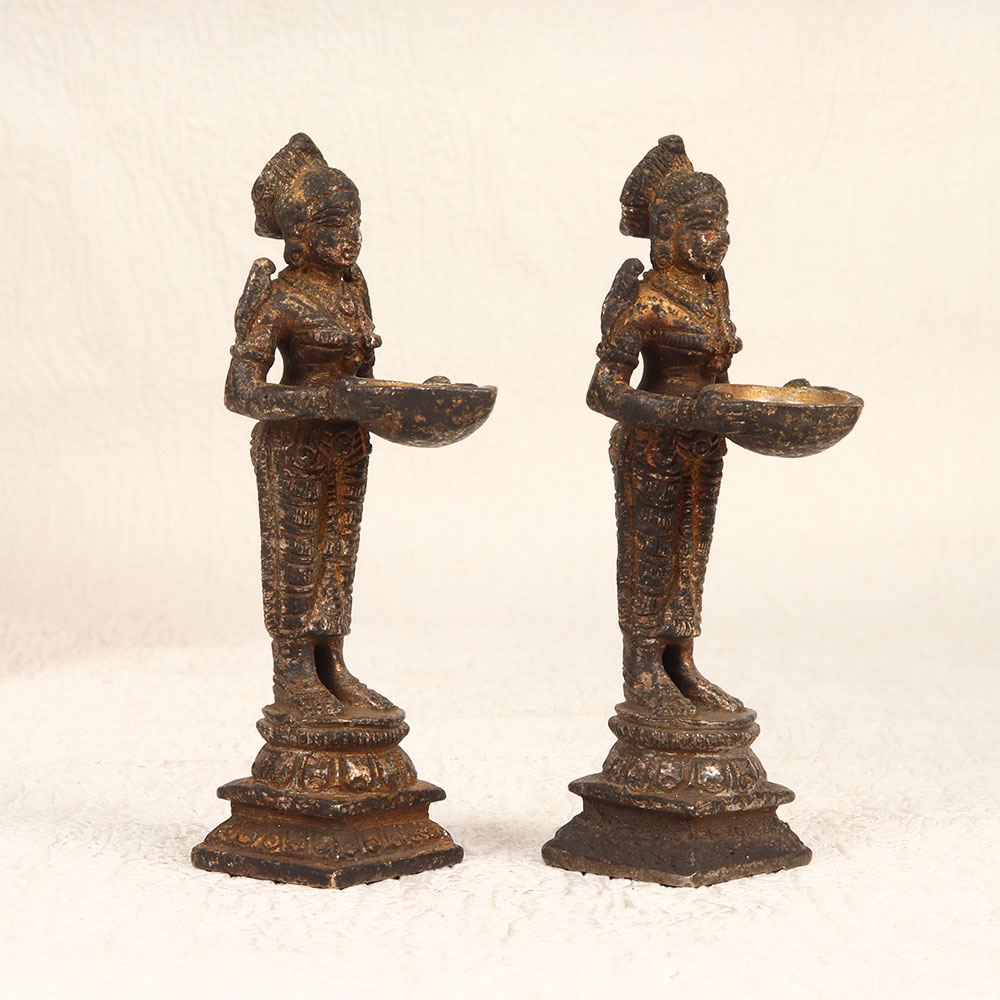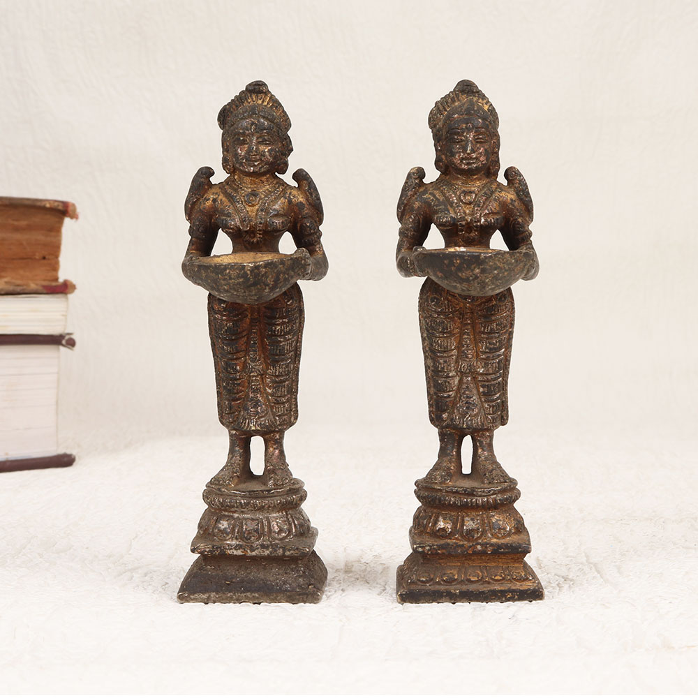 Buy a Vintage Brass Deep Laxmi Statue Pair online and get a hassle free delivery right at your doorstep. Crafted by highly talented Indian artisans, these statues boast a rich antique brown finish that adds a touch of opulence to any setting. Handmade from high-quality brass, each piece in this pair resonates with the cultural heritage and craftsmanship of India. With intricate detailing and a classic design, these statues are versatile enough to enhance various environments, including homes, offices, restaurants, hotels, cafes, and prayer rooms. Beyond their spiritual significance, these statues also serve as captivating decorative pieces, seamlessly blending tradition with sophistication. The statues make a perfect addition to any vintage collection, showcasing the enduring beauty of brass craftsmanship. Celebrate special, festive, or auspicious occasions by gifting these statues to your family, friends or relatives. Their enduring charm and cultural significance make them a cherished and meaningful present that transcends time and trends.