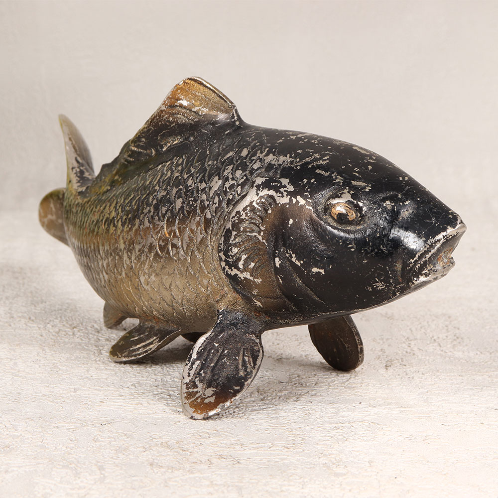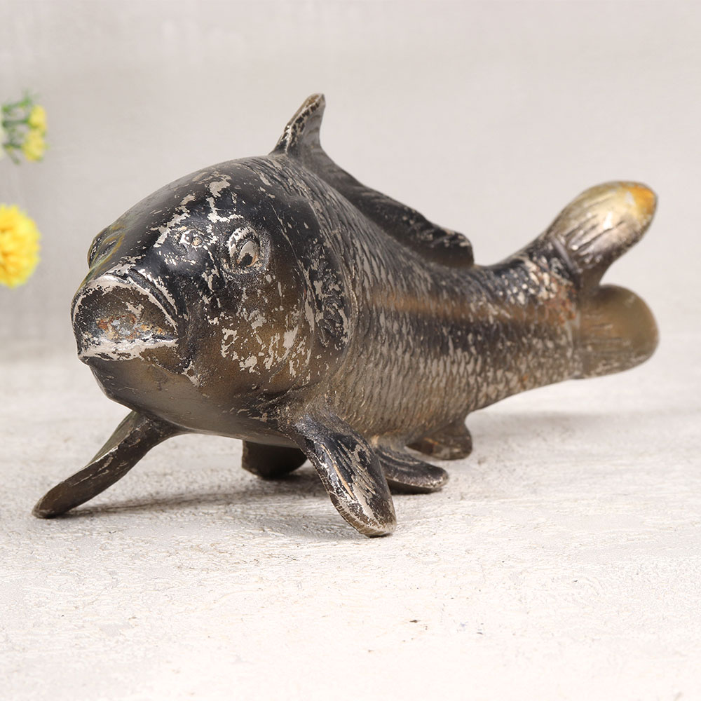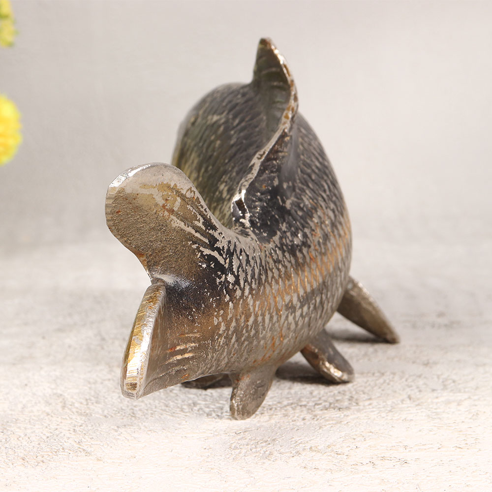 Decorate your home with this brass fish statue that is a testament to the artistry of highly skilled Indian craftsmen. Handcrafted in the rich tradition of English Art, this captivating piece boasts a stunning silver and dark finish that adds a touch of sophistication to any space. Crafted from high-quality brass, the statue exudes both elegance and durability. Versatile in its appeal, this artisanal creation finds a perfect place in your home, office, restaurant, hotel, or cafe, serving as a distinctive decorative element. Its unique design lends itself seamlessly to vintage collections, enhancing the aesthetic allure of your surroundings. Beyond its ornamental value, this brass fish statue makes for an exceptional gift, perfect for expressing sentiments on special, festive, or auspicious occasions.