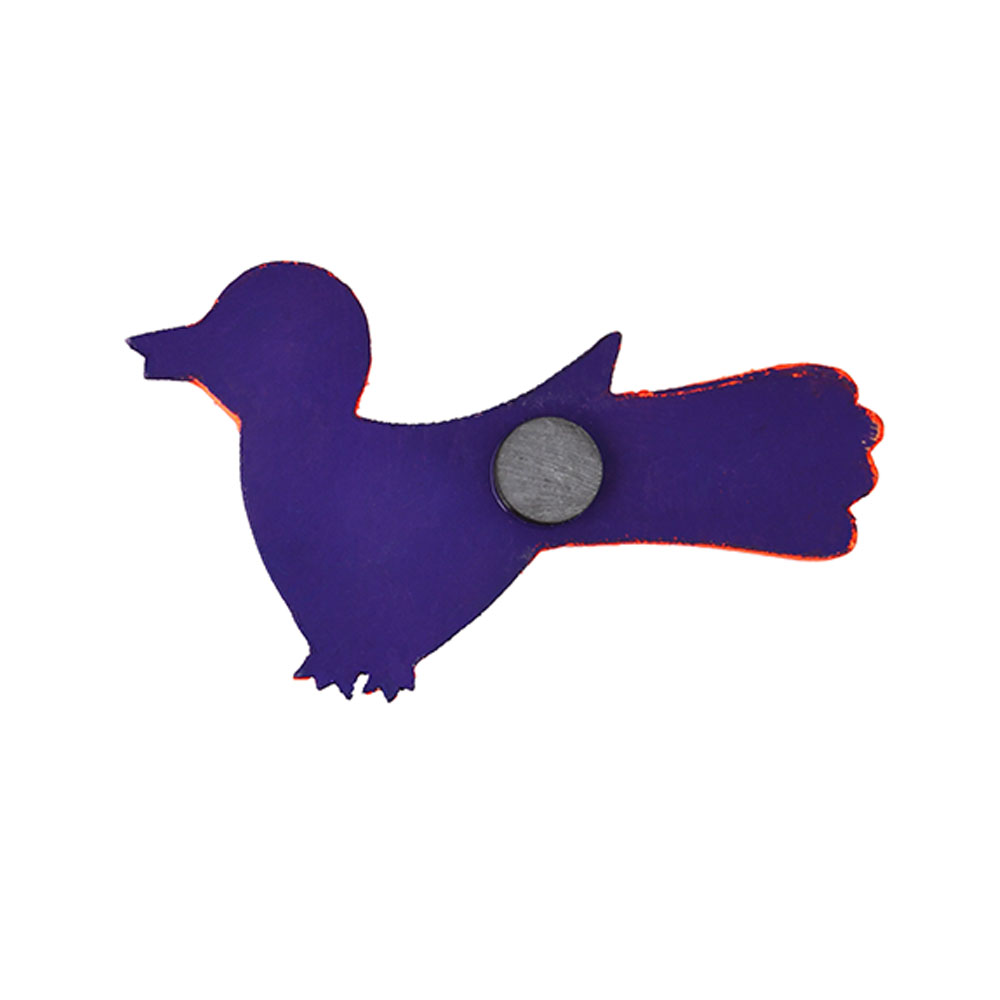 This magnet features a stylized bird shape brought to life through hand drawn patterns and layered paint work. The form reflects traditional craft sensibilities while adding a lively visual presence to any metal surface.