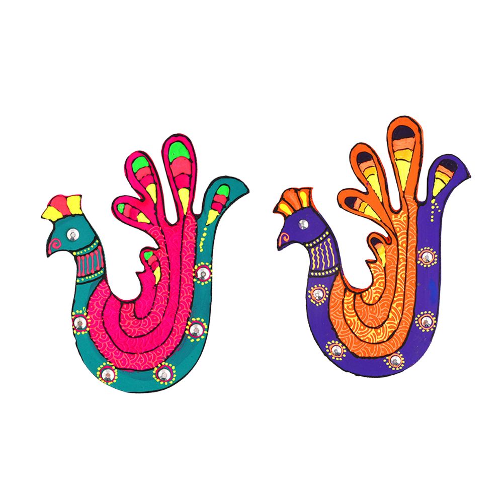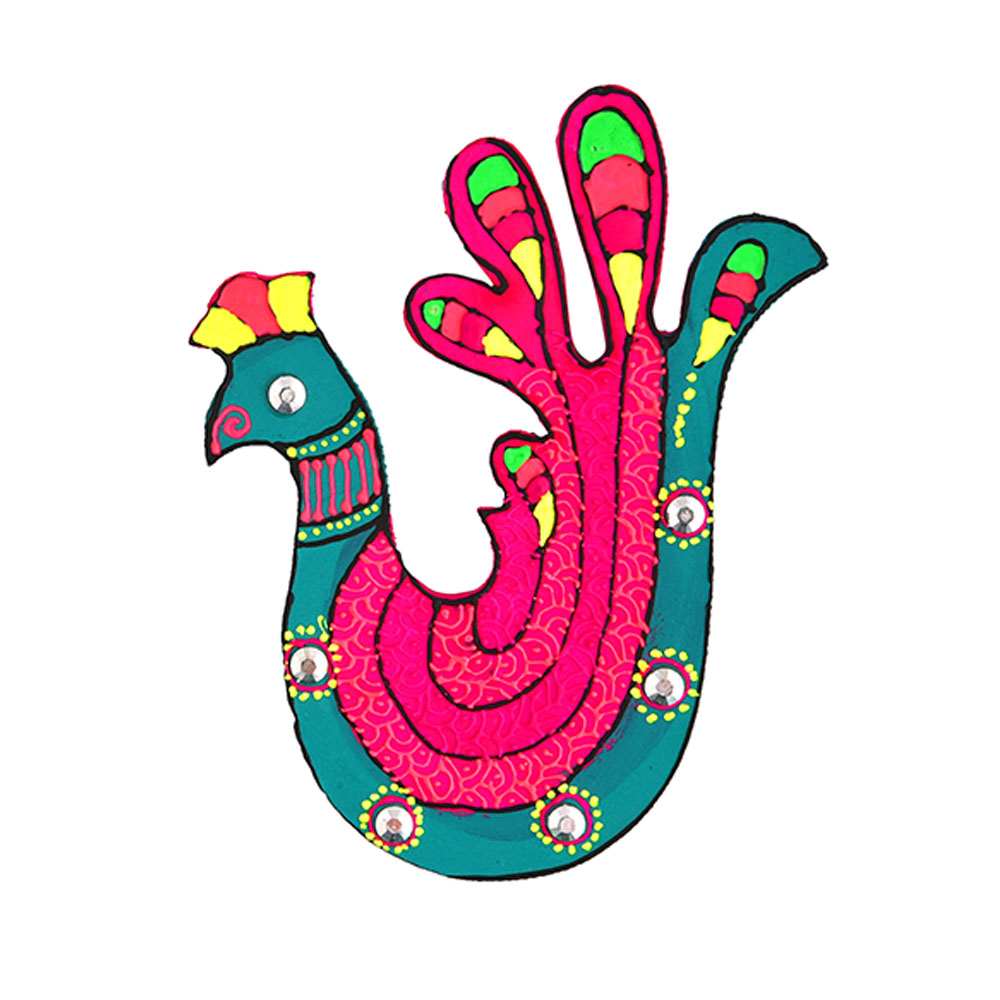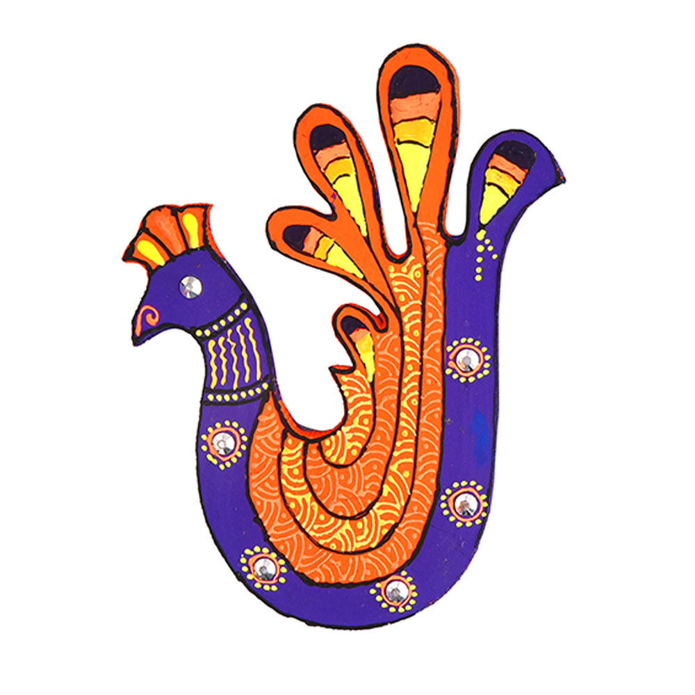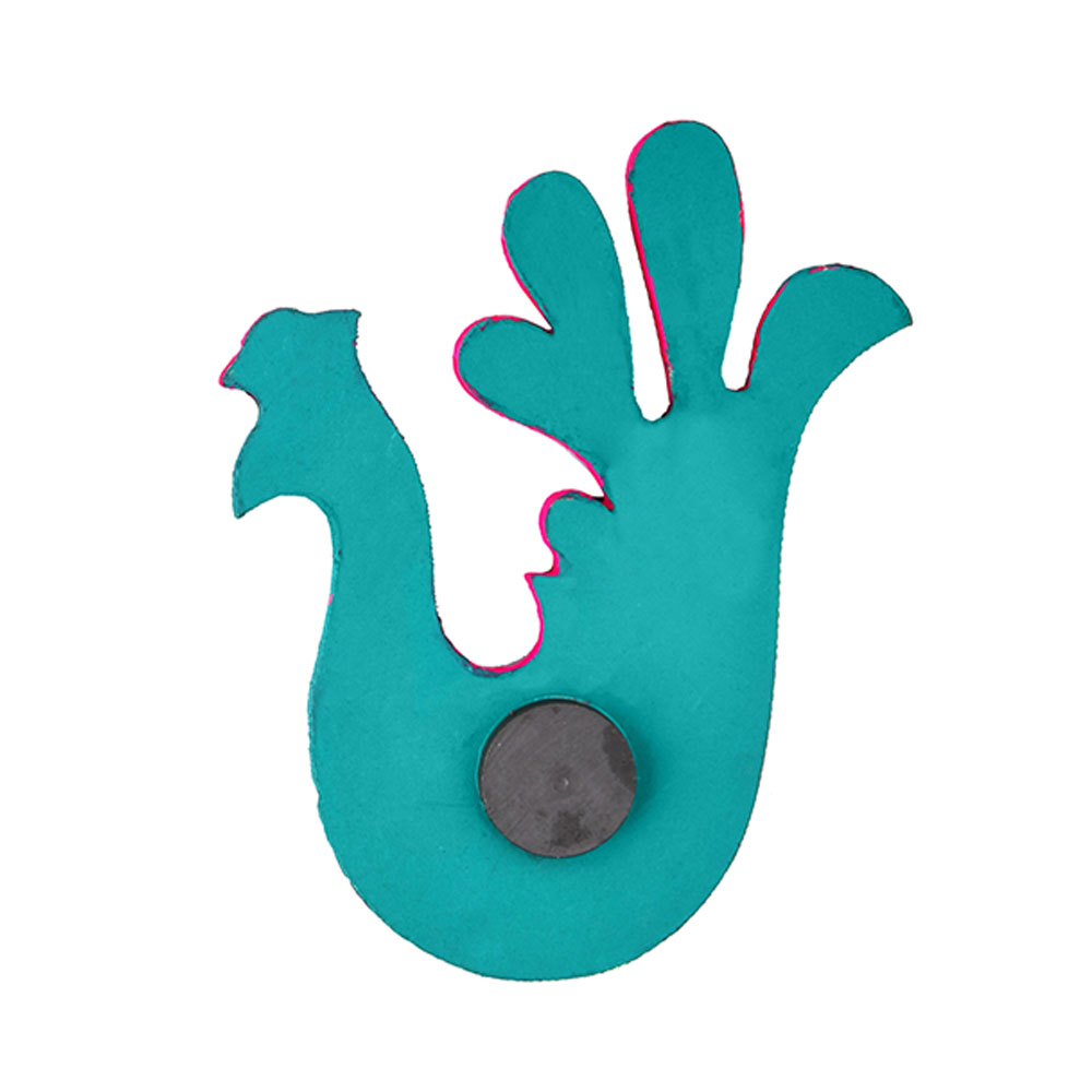 This decorative magnet features a stylized peacock form shaped through traditional hand techniques. The elongated body and detailed surface patterns reflect cultural artistry while creating a graceful and expressive visual presence.
