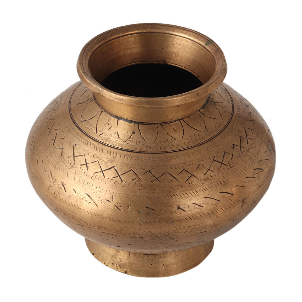 The Gangajal Holy Pot is decorated with patterns and is made of bronze. It can be used in Hindu wedding rituals, worship of God, etc. An ideal gift for spiritual occasions, birthdays and for your loved ones.
