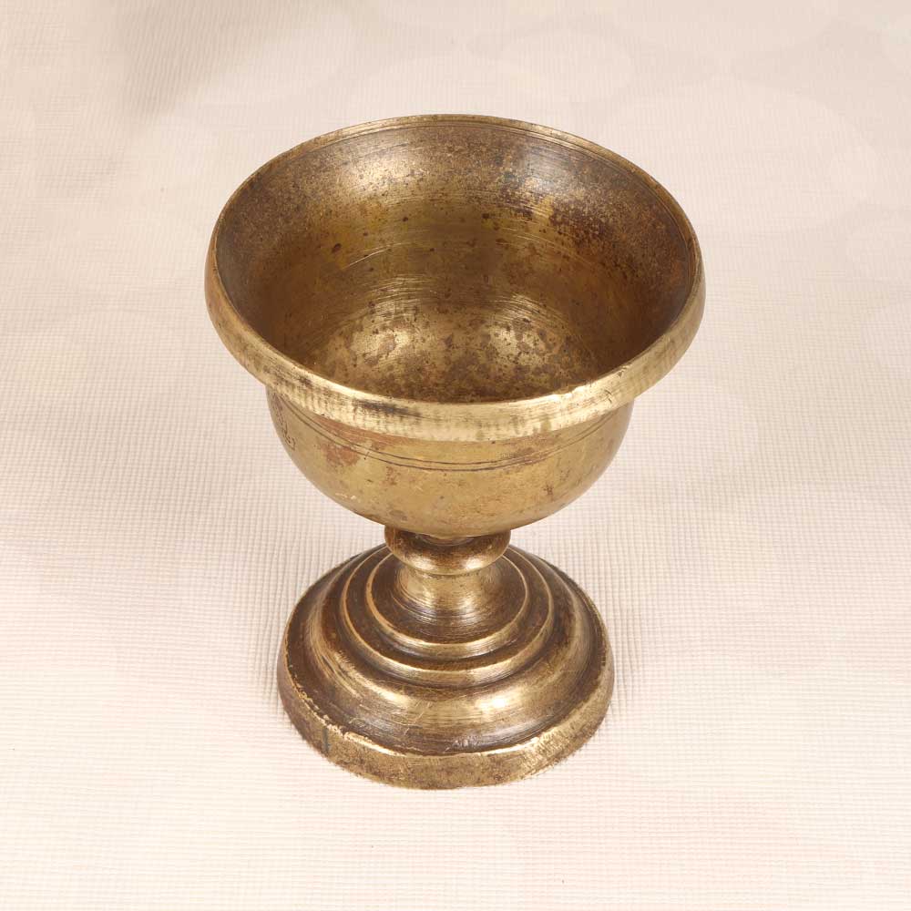 Incorporate a sense of heritage and devotion into your daily prayers with this vintage brass kumkum cup. Featuring a brilliant golden shine and ornate etchings, this cup beautifully elevates your sacred rituals. Skillfully designed to be both beautiful and functional, this kumkum cup is perfect for daily use. The smooth, golden brass finish gives it an heirloom feel, while the etched flowers add delicate details. The round cup holds just enough kumkum powder for forehead application during puja. With a weighted base, the cup sits neatly in place rather than tipping over. Keep your faith connected to the past by bringing this heritage-styled brass cup into your daily rituals. Its portable size allows you to store it with your regular puja items for easy access. Add deeper meaning to your prayers with this graceful kumkum cup. The key features include: