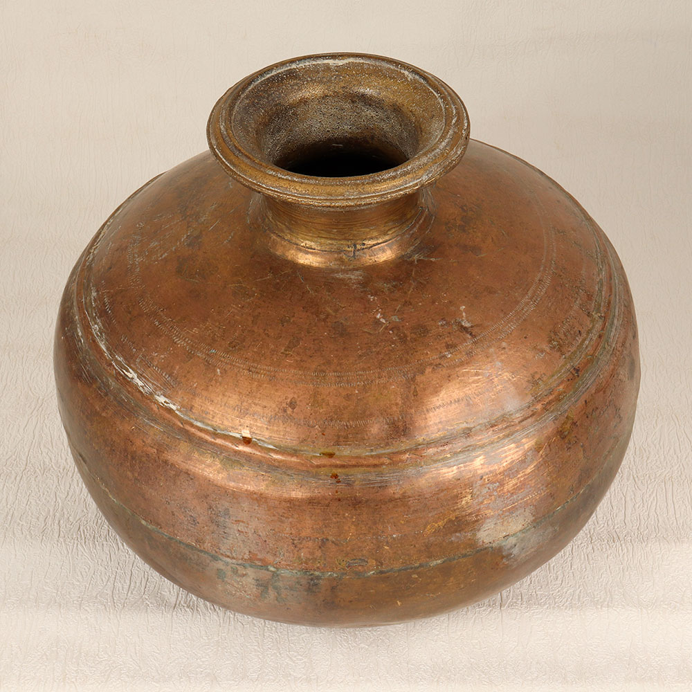 Enhance your space with the timeless elegance of this Vintage Brass Water Pot which is a masterpiece crafted by highly skilled Indian artisans in the Himalayan Art tradition. Made from high-quality brass, this unique piece boasts a small mouth and an antique brown finish, reflecting the artistry and craftsmanship of a bygone era. The pot's intricate design and handmade detailing make it a perfect addition to any setting, whether it be at home, in your office, a restaurant, hotel, or cafe. Its versatility extends beyond a mere decorative item, as it doubles as an indoor flower pot, adding a touch of nature's beauty to your surroundings. This vintage brass water pot is not just a decorative piece but a conversation starter, making it an ideal addition to any vintage collection. The rich heritage embedded in its design resonates with the cultural significance of Himalayan craftsmanship. Furthermore, it serves as a thoughtful and meaningful gift for your family, friends or relatives on special, festive, or auspicious occasions, encapsulating the spirit of tradition and artistry within a single, beautifully crafted piece.