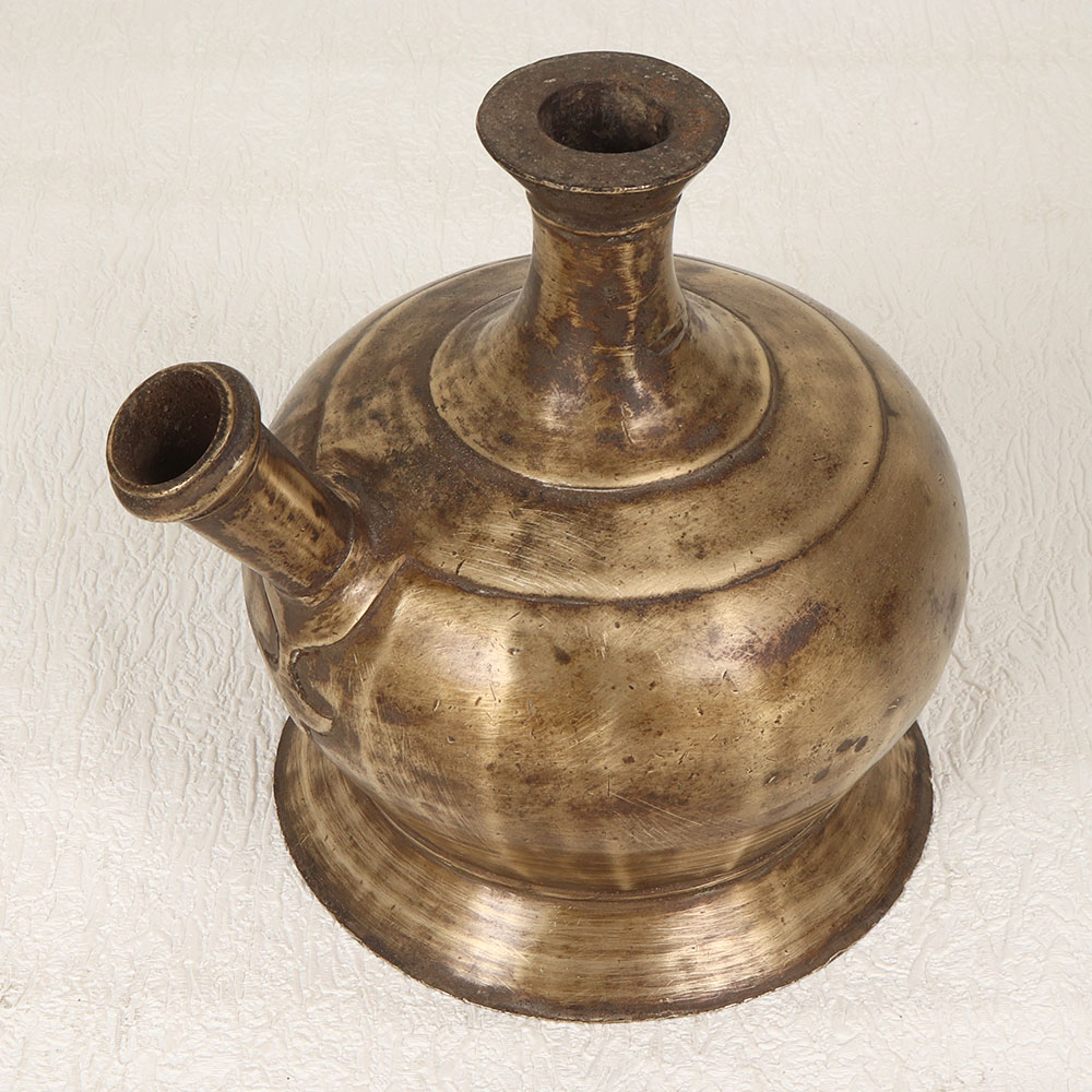 Immerse yourself in the timeless allure of this vintage brass hookah base which is a testament to the artistry of highly talented Indian artisans in Himalayan Art. Handmade with meticulous craftsmanship, this enchanting piece boasts a lustrous antique brown finish, evoking a sense of nostalgia and sophistication. Crafted from high-quality brass, the hookah base not only exudes a sense of authenticity but also promises durability. Its versatile design transcends the boundaries of traditional use, allowing it to seamlessly integrate into various settings. Transform your living space, office, restaurant, hotel, or cafe by repurposing this artisanal masterpiece as an indoor flower pot, adding a touch of elegance and history to any environment. This unique hookah base is a treasure for collectors, serving as a captivating addition to vintage enthusiasts' curated displays. Its rich, warm tones and intricate detailing make it a standout piece that captures the essence of a bygone era. Celebrate special moments by gifting this timeless creation to your family, friends or relatives on occasions that demand a touch of cultural richness, be it a festive celebration or an auspicious gathering.