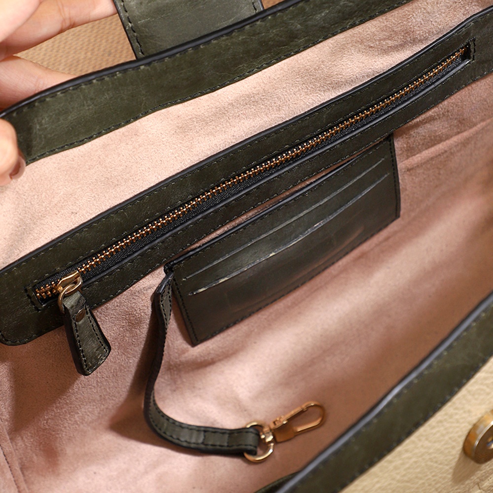 Crafted in gorgeous Honey Dew, Dove and Jungle leather, this tote is secured with a sleek magnetic loop closure and comfortably fits laptops up to 13 inches. Beyond the laptop compartment, it offers ample space for your diary, notebook, documents, and other office essentials, ensuring to be your ideal daily companion.