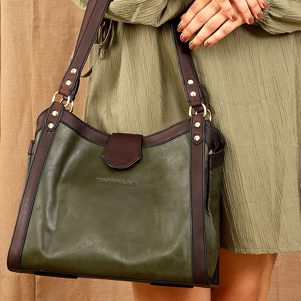 Crafted in gorgeous Jungle and Dark Chocolate Leather, this tote is secured with a sleek magnetic loop closure and comfortably fits laptops up to 13 inches. Beyond the laptop compartment, it offers ample space for your diary, notebook, documents, and other office essentials, ensuring to be your ideal daily companion.