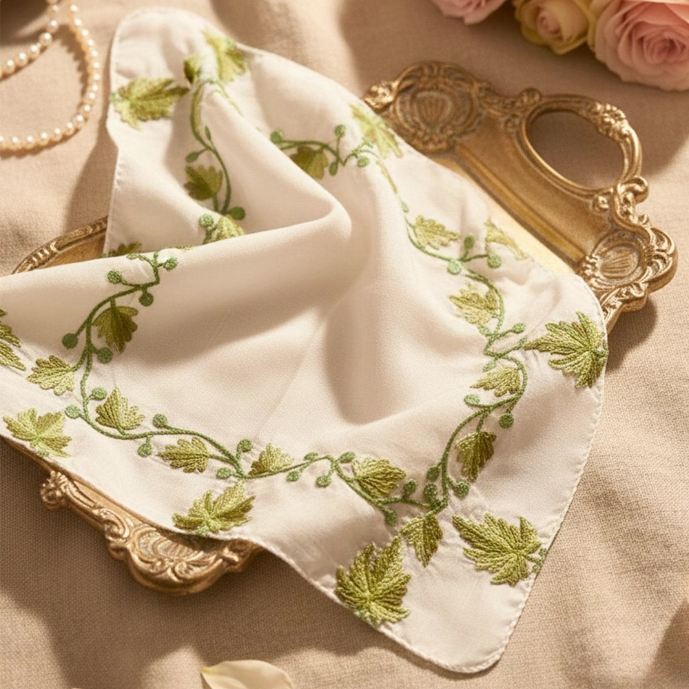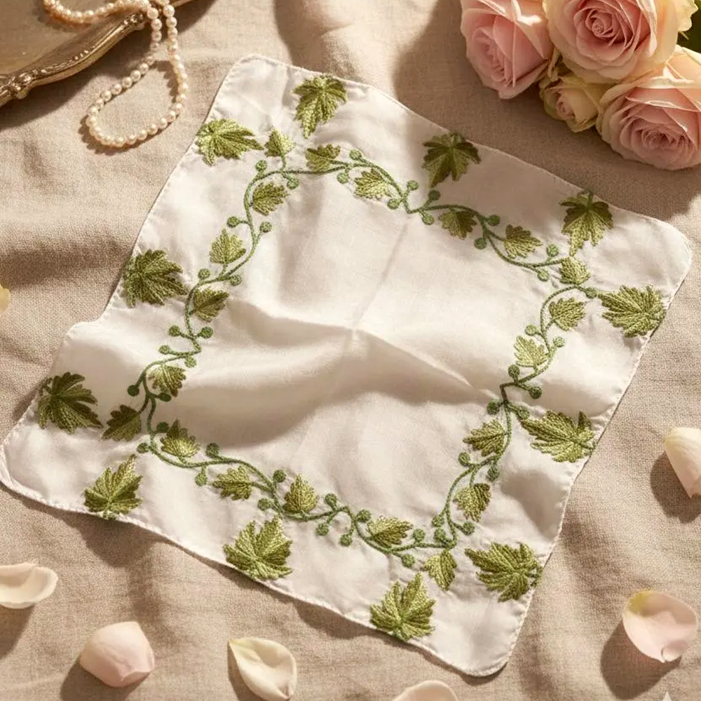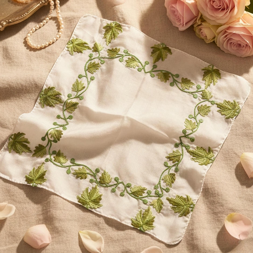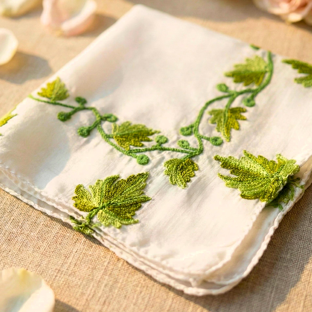 Each handkerchief is handcrafted, so slight variations in embroidery add to its uniqueness.